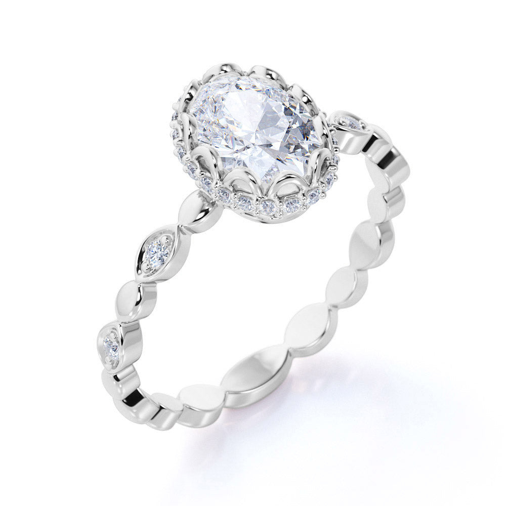 Vintage 1.50 Carat Oval Cut Moissanite Engagement Ring