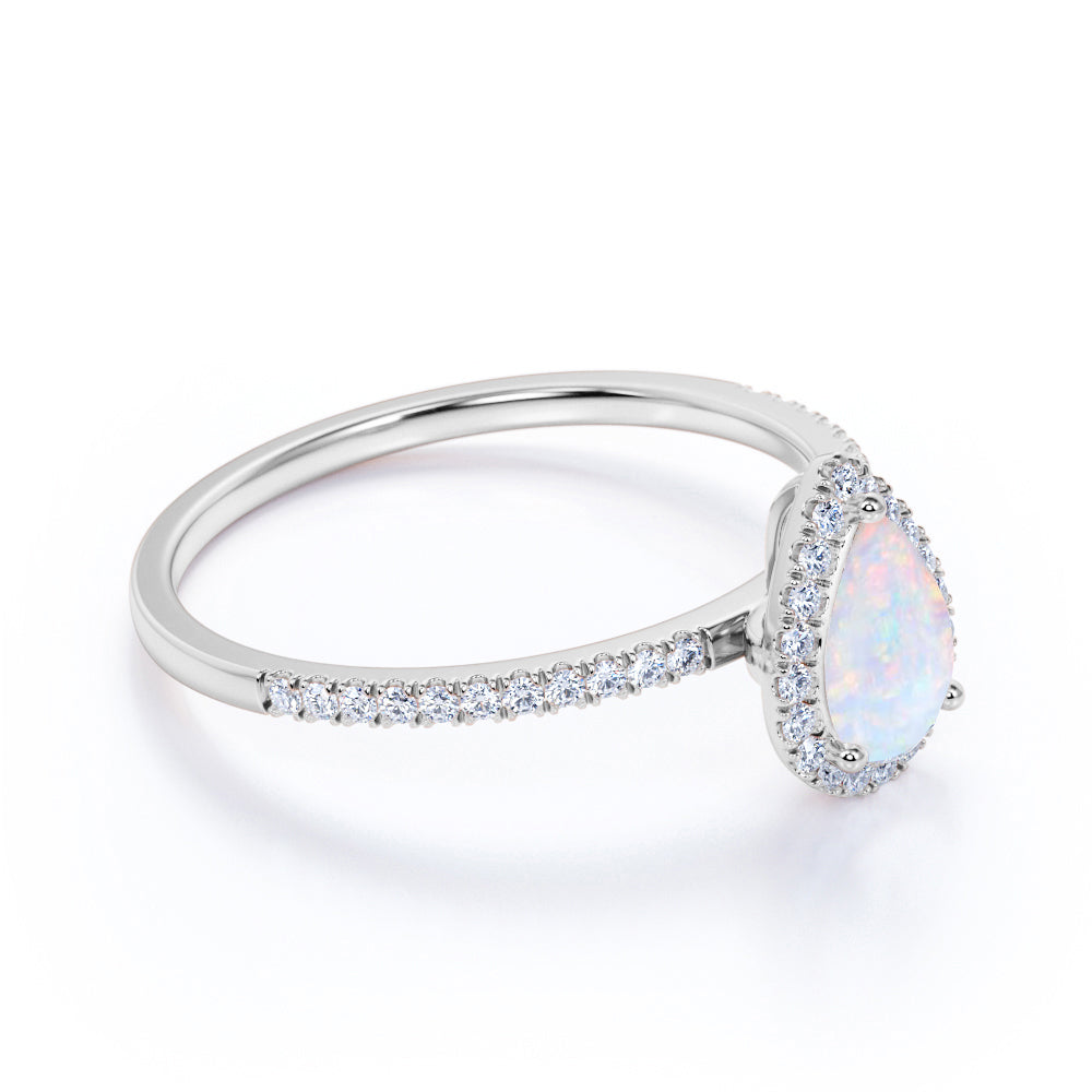 1.50 ct Vintage Pear Shaped Opal and Moissanite Halo Wedding Ring in 18K White Gold over Silver