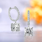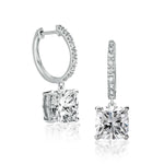 Discover the allure of hoop moissanite earrings – a fusion of modern charm and classic grace with our 1.75 Carat Cushion Cut Moissanite Hoop Earrings Pave Set with Charm in 18K White Gold over Silver. These moissanite hoops earrings are an embodiment of versatility, making them an ideal choice for an array of occasions, whether you're attending a formal gala or enjoying a casual rendezvous. Designed to perfection, these silver hoop earrings with charms boast a delicate 18K white gold over silver setting with a perfectly shaped cushion cut charm that weighs 1.75 in total. These huggie earrings with charms are crafted to stand the test of time, becoming cherished companions in your journey of style. With their enchanting sparkle and a size that's just right, these thin hoop earrings with charm effortlessly enhance any ensemble, making them perfect for both everyday elegance and special occasions. Purchase this pair of cushion cut moissanite earrings today and they will prove every of your penny worth.