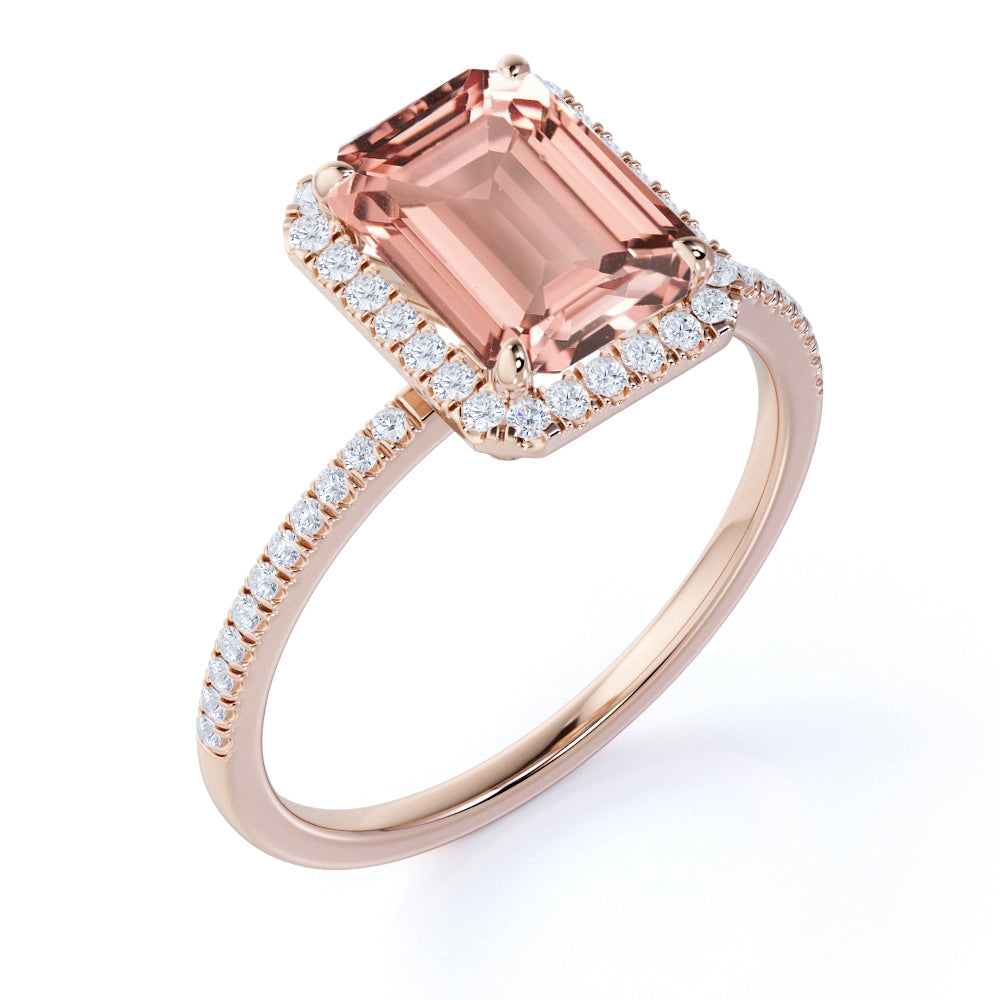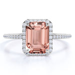 1.75 ct Emerald Peach Pink Morganite Halo Engagement Ring