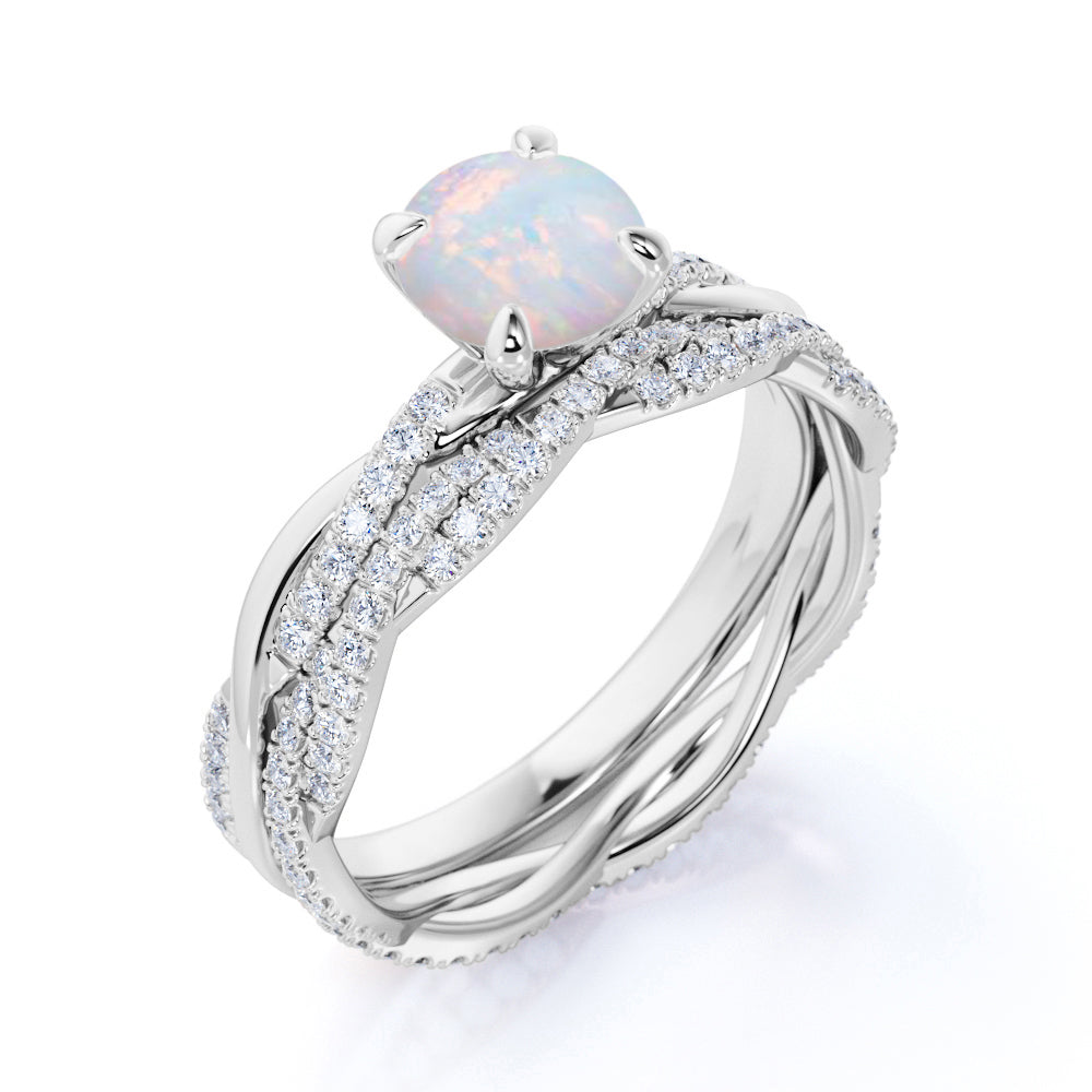 1.75 Ct Round Cut Lab Created Opal Infinity Bridal Set