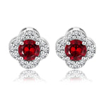 1 carat Beautiful Flower Halo Round Shaped - Garnet - January Birthstone Stud Earrings in 18K White Gold over Silver