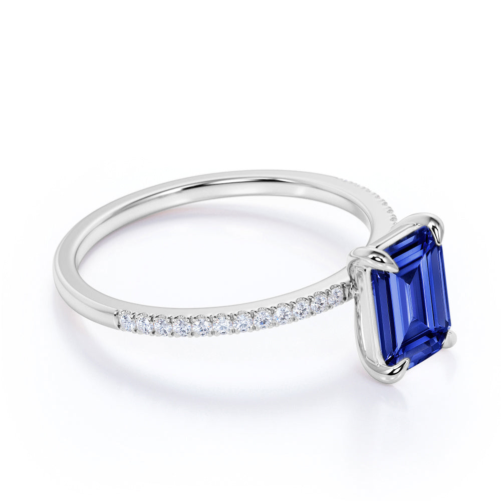 1 Ct Emerald Cut Lab Sapphire Solitaire Engagement Ring