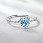 1 Carat Heart shape - Blue Topaz - December Birthstone Wedding Ring in 18k White Gold Over Silver