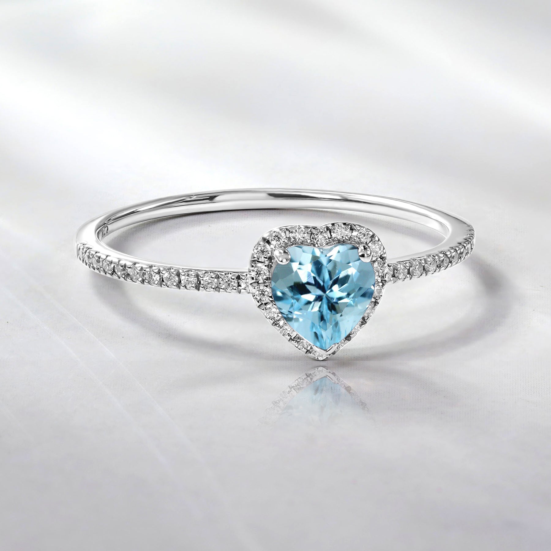1 Carat Heart shape - Blue Topaz - December Birthstone Wedding Ring in 18k White Gold Over Silver. The bridal wedding ring is made with real and high quality Cubic Zirconias that can be a perfect alternative to diamond rings. Your beautiful jewelry ring comes with a 30 Days Full Refund policy. The Cubic Zirconia engagement ring is perfect gift for anniversary, birthday, mothers day, or any other special occasion to celebrate.|Total Carat Weight (All Stones): 1 carat|Main Gemstone Type: Cubic Zirconia|Main Gemstone Color: Near Colorless|Main Gemstone Clarity: AAA|Metal Type: 18k White Gold Over Silver|Ring Design Type: Engagement Ring / Bridal Ring / Wedding Ring|Condition: New