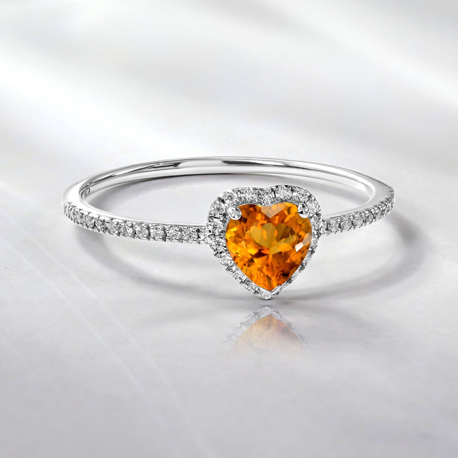 1 Carat Heart shape - Citrine - November Birthstone Wedding Ring in 18k White Gold Over Silver