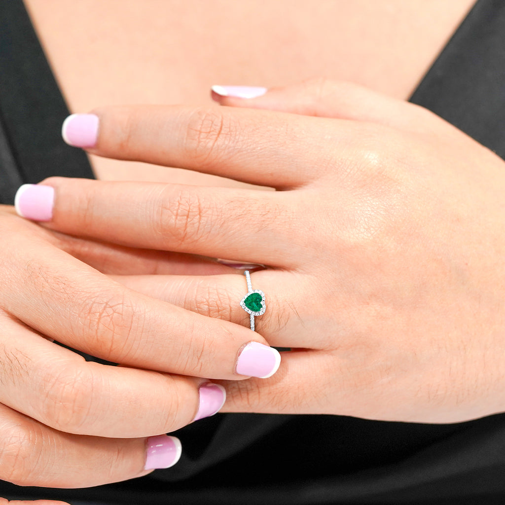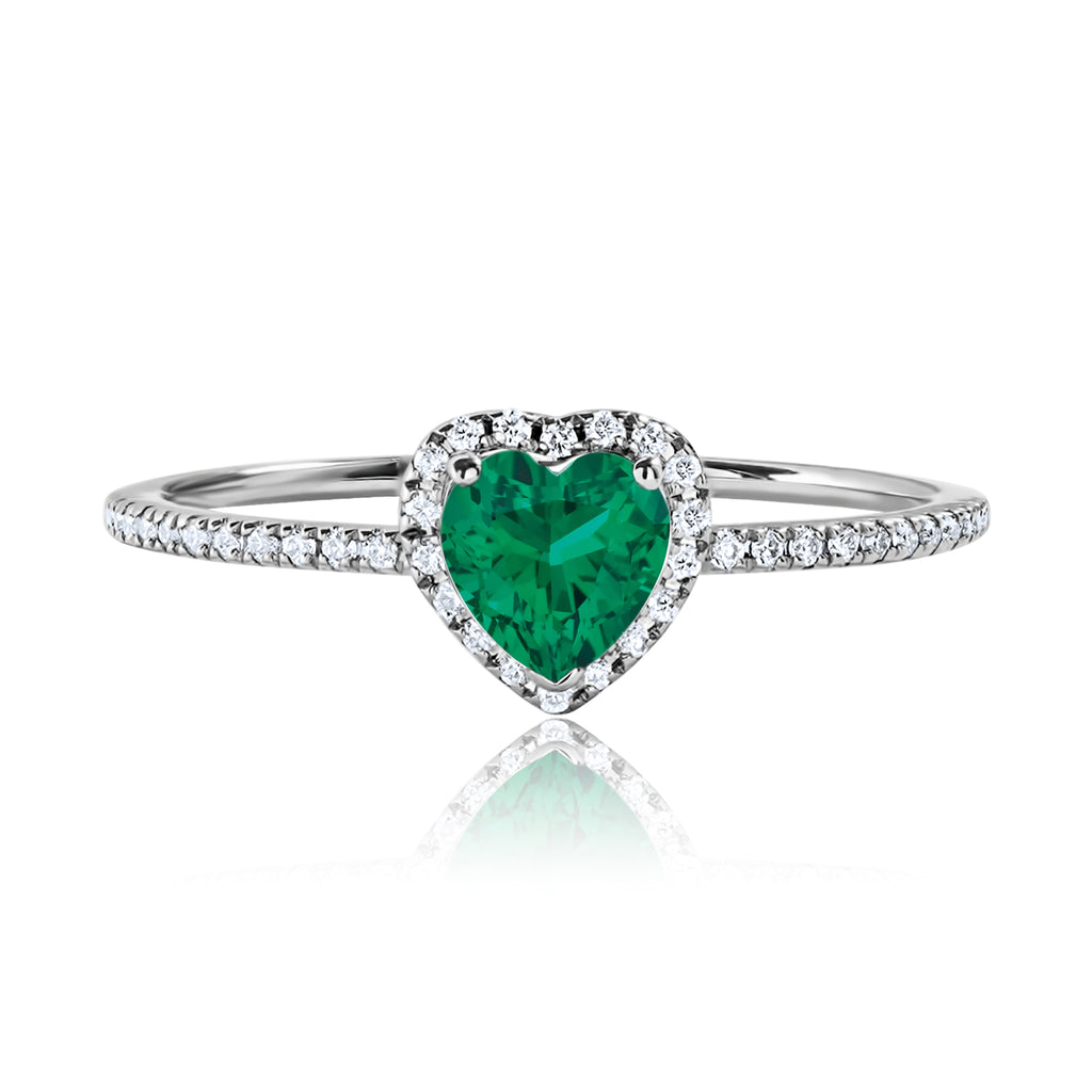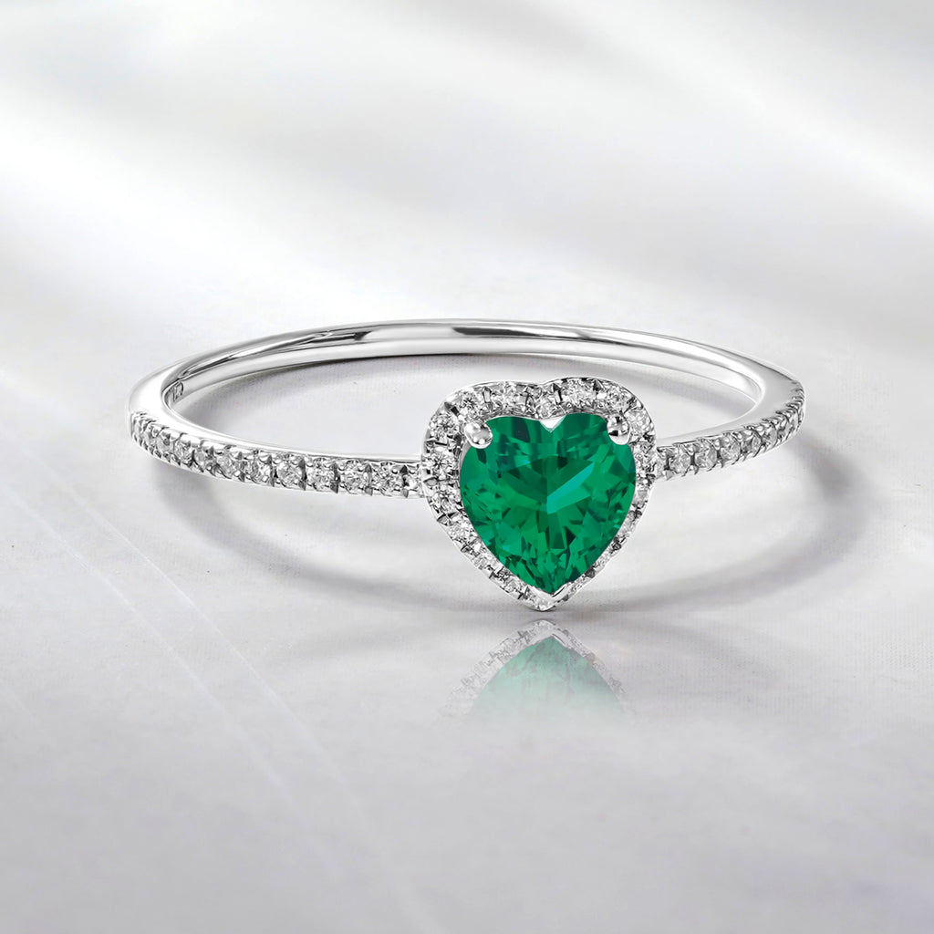1 Carat Heart shape - Emerald - May Birthstone Wedding Ring in 18k White Gold Over Silver