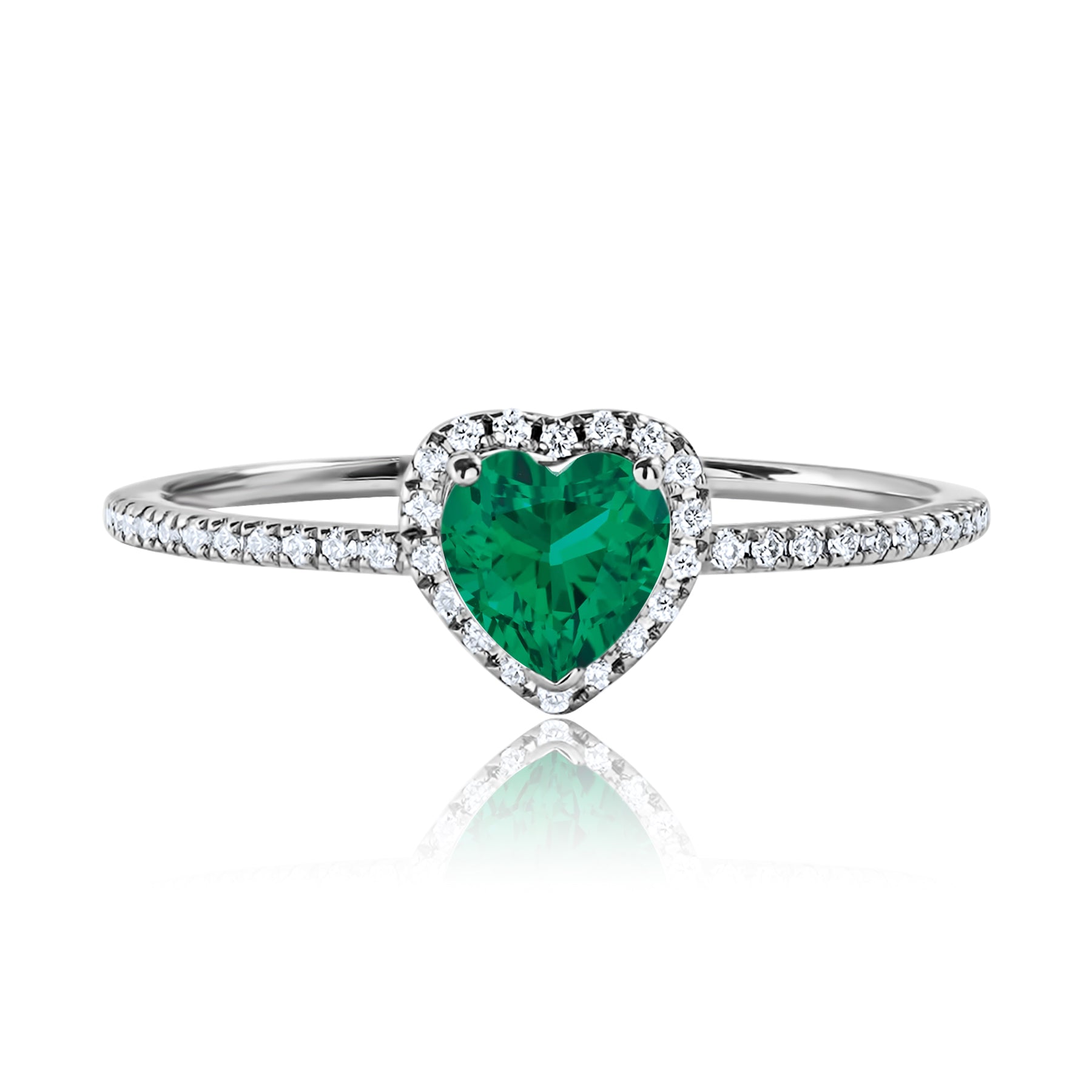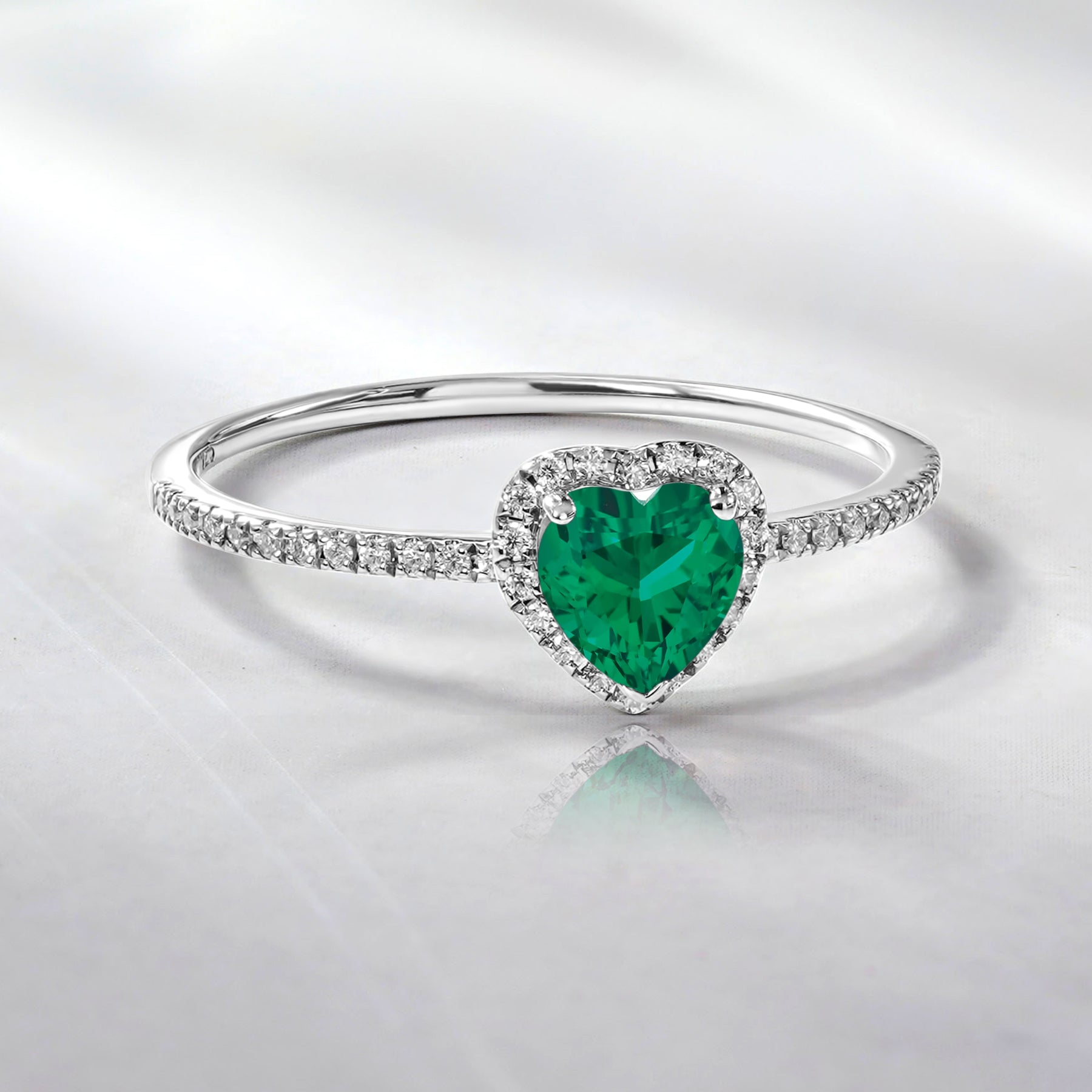 1 Carat Heart shape - Emerald - May Birthstone Wedding Ring in 18k White Gold Over Silver. The bridal wedding ring is made with real and high quality Cubic Zirconias that can be a perfect alternative to diamond rings. Your beautiful jewelry ring comes with a 30 Days Full Refund policy. The Cubic Zirconia engagement ring is perfect gift for anniversary, birthday, mothers day, or any other special occasion to celebrate.|Total Carat Weight (All Stones): 1 carat|Main Gemstone Type: Cubic Zirconia|Main Gemstone Color: Near Colorless|Main Gemstone Clarity: AAA|Metal Type: 18k White Gold Over Silver|Ring Design Type: Engagement Ring / Bridal Ring / Wedding Ring|Condition: New