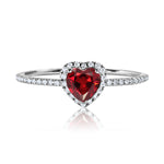 1 Carat Heart shape - Garnet - January Birthstone Wedding Ring in 18k White Gold Over Silver