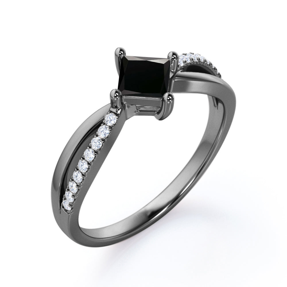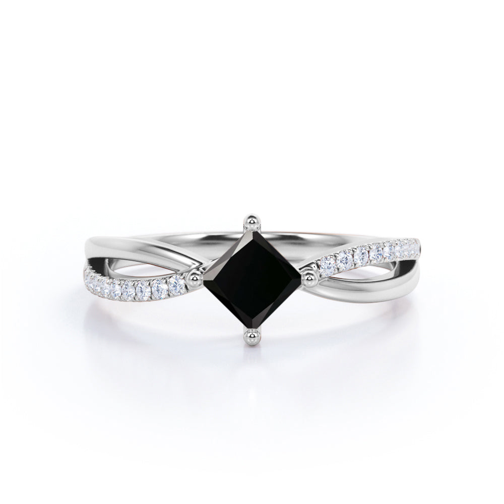 1 ct Princess Lab Black Diamond Infinity Engagement Ring