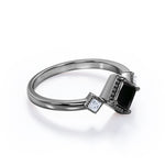 1 carat princess cut Black Diamond three stone pave engagement ring in white gold