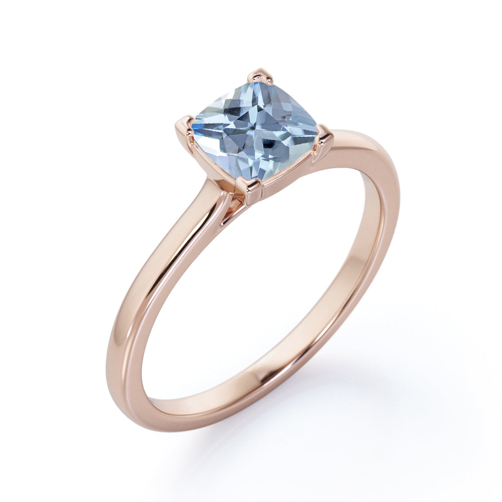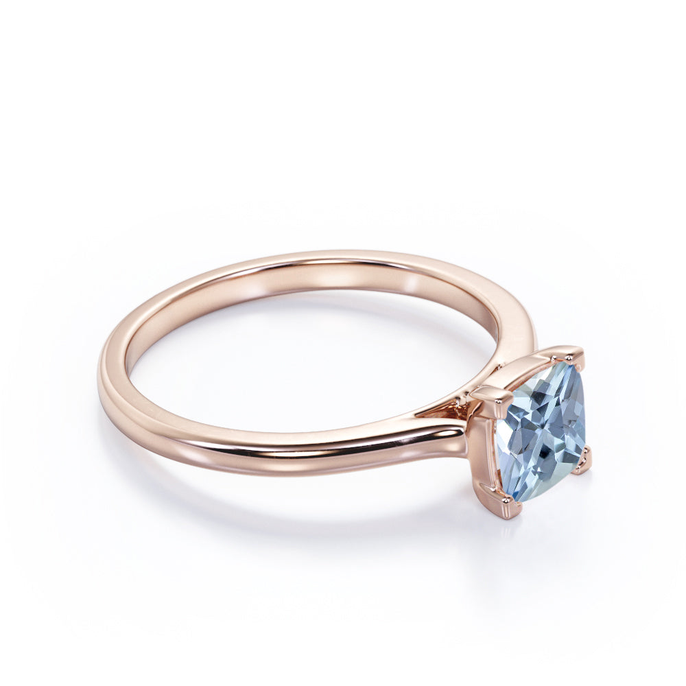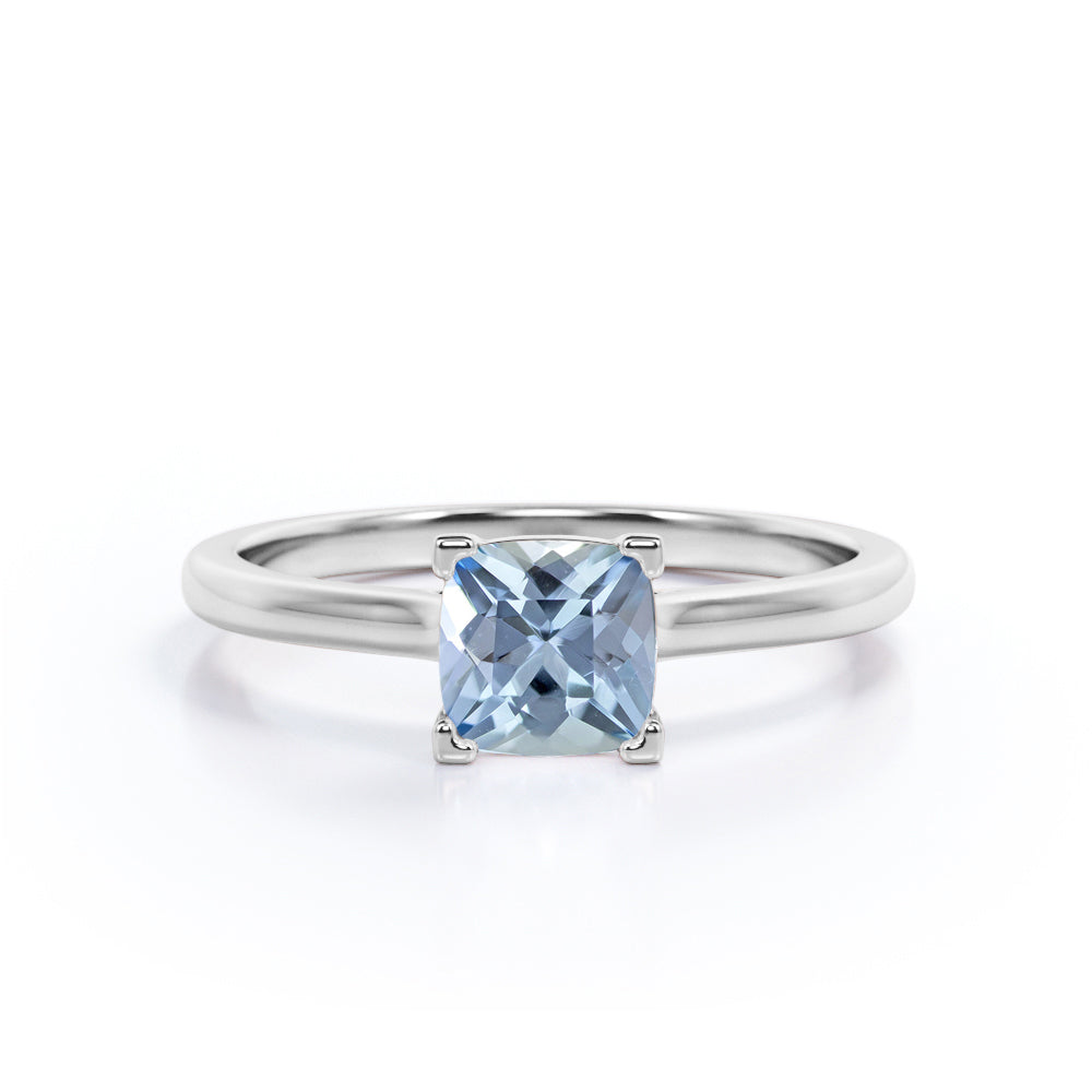 1 ct Cushion Aquamarine Solitaire Engagement Ring