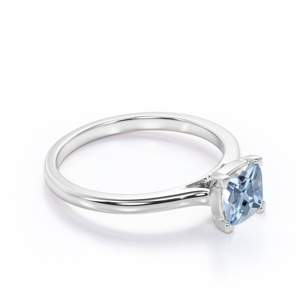 1 ct Cushion Aquamarine Solitaire Engagement Ring