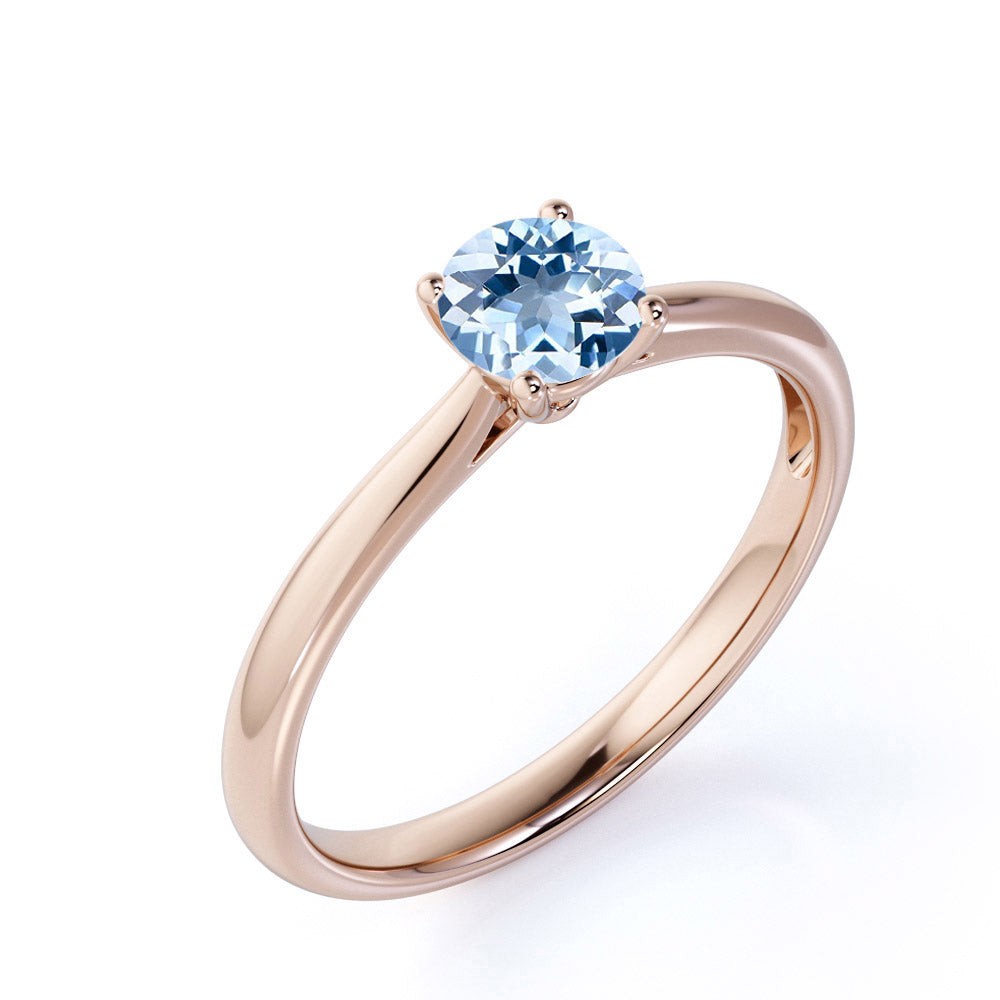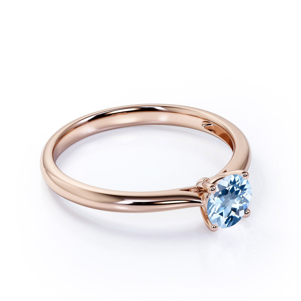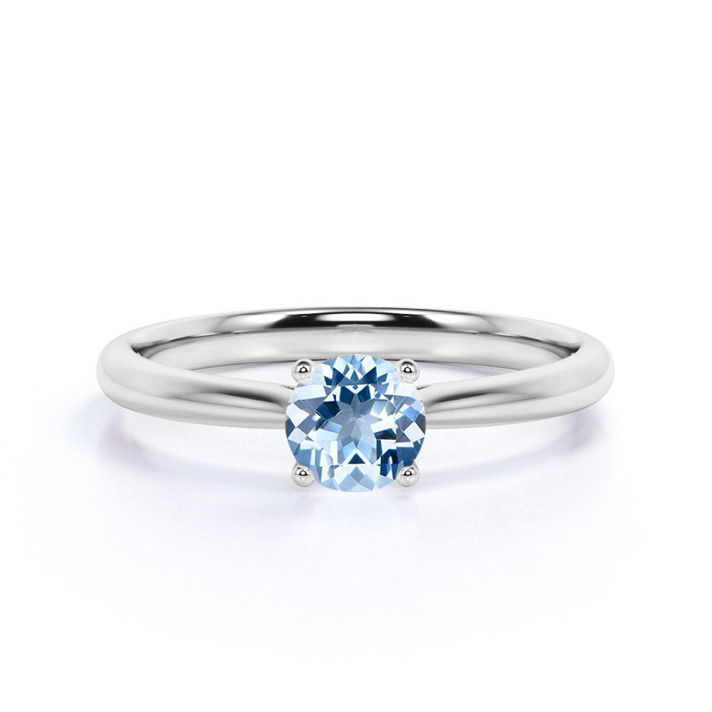 1 ct Round Cut Aquamarine Solitaire Engagement Ring