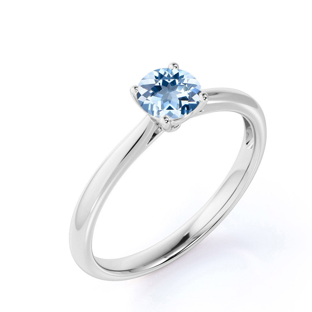1 Carat Round cut Aquamarine Solitaire Engagement Ring in White Gold.The ring is made with real Aquamarine and on real solid 10k Gold. The order comes with Jewelry Certificate, and 30 Days Full Refund policy.