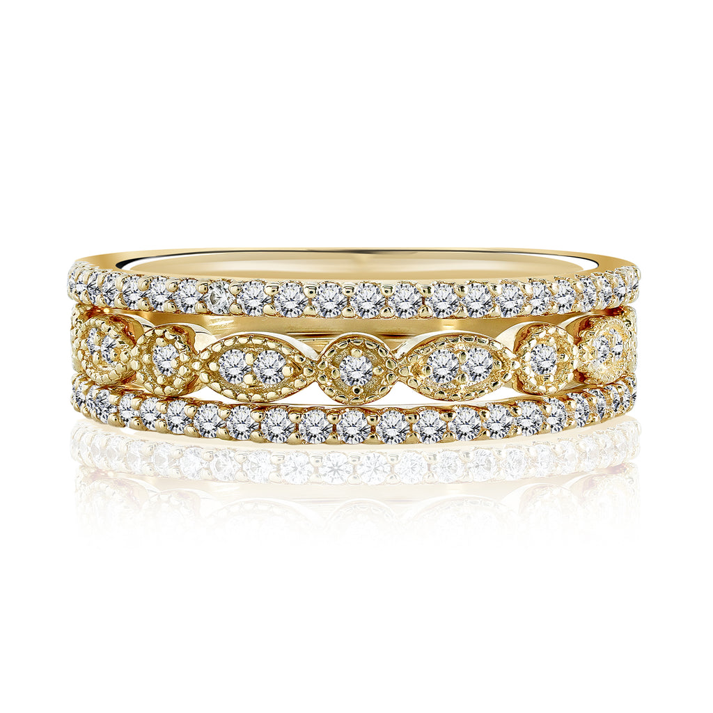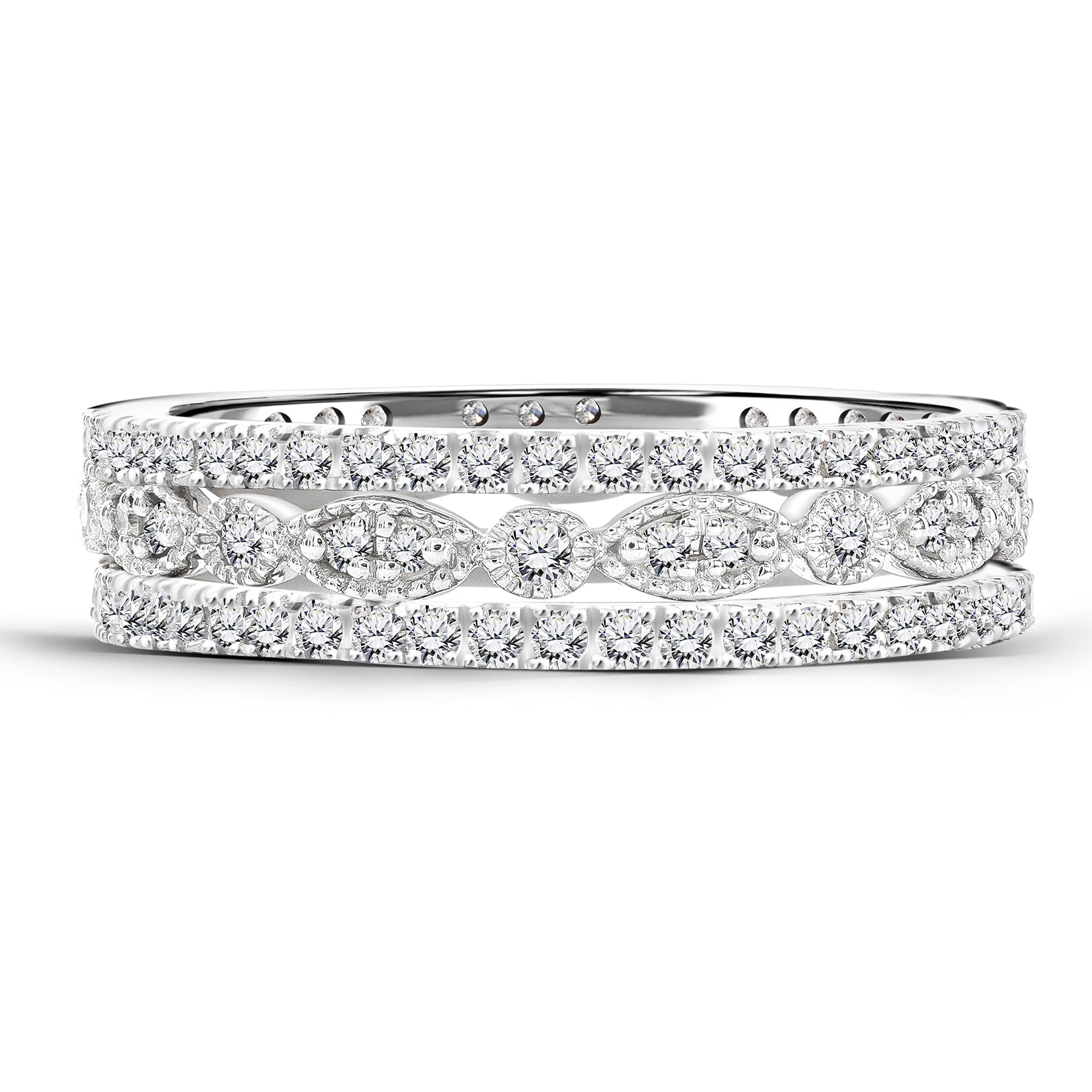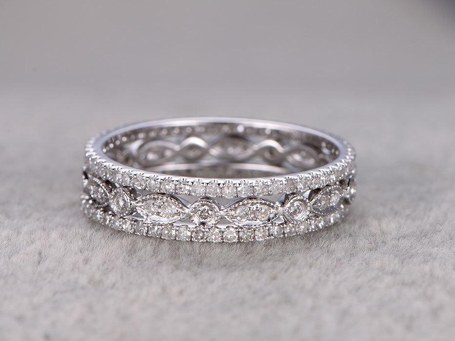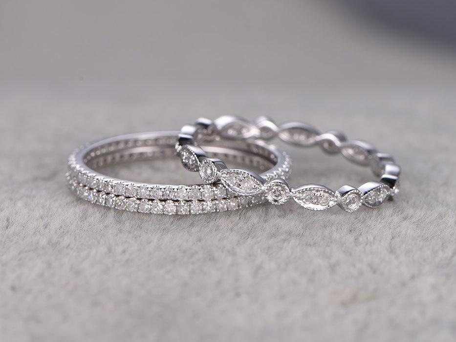 1 Carat Round cut Art Deco Wedding Ring Band Trio Set