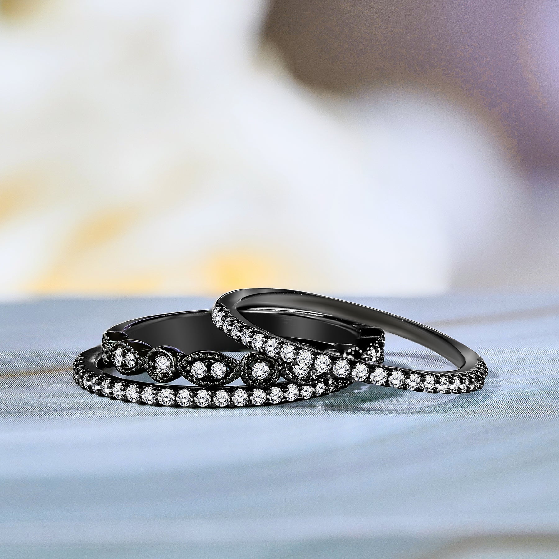 1 Carat Round cut Art Deco Wedding Ring Band Trio Set
