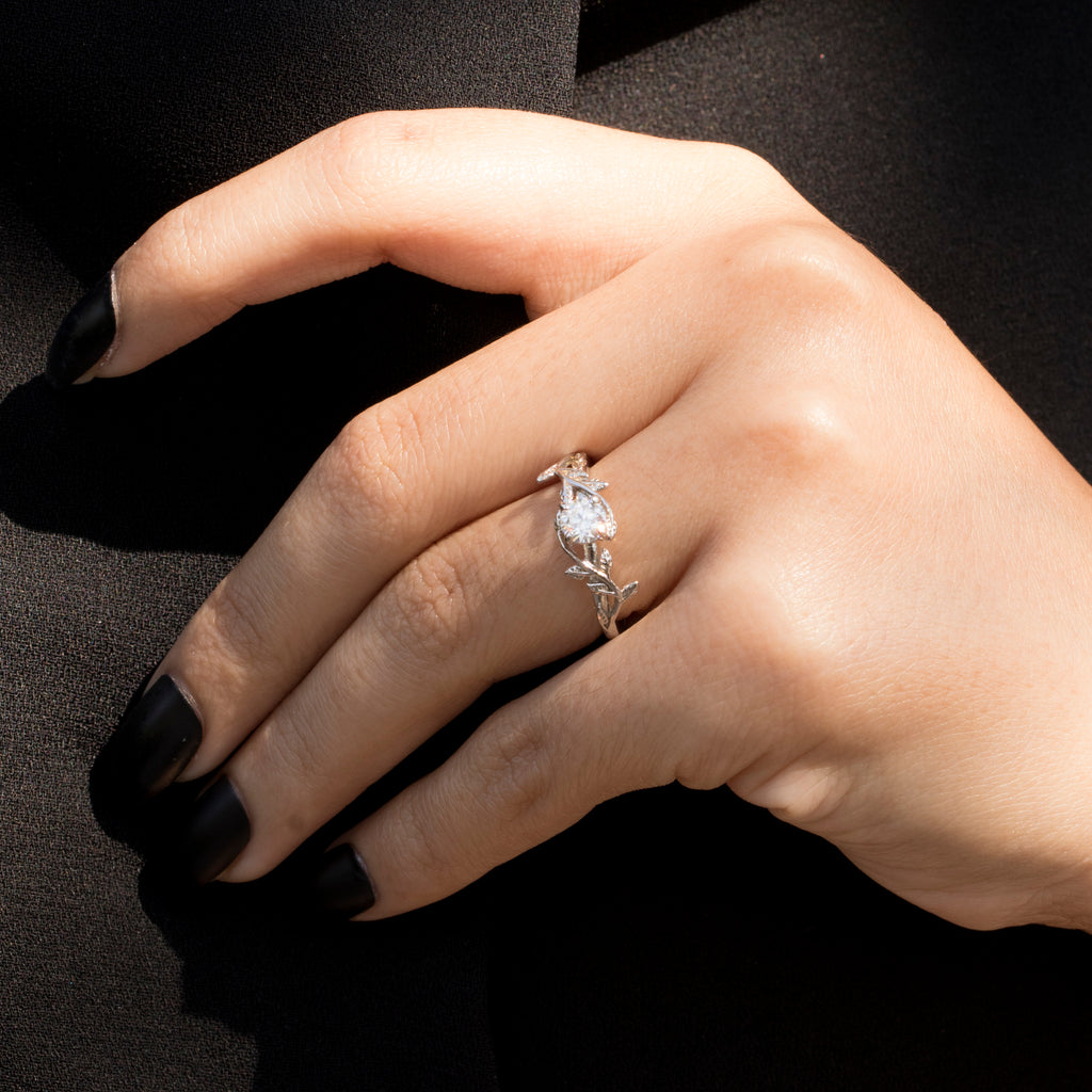 Nature Inspired 1 Carat Round Cut Moissanite Engagement Ring
