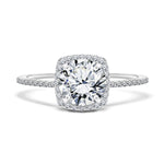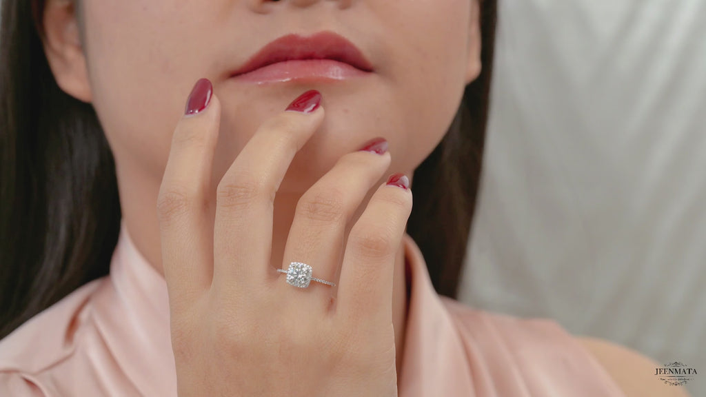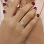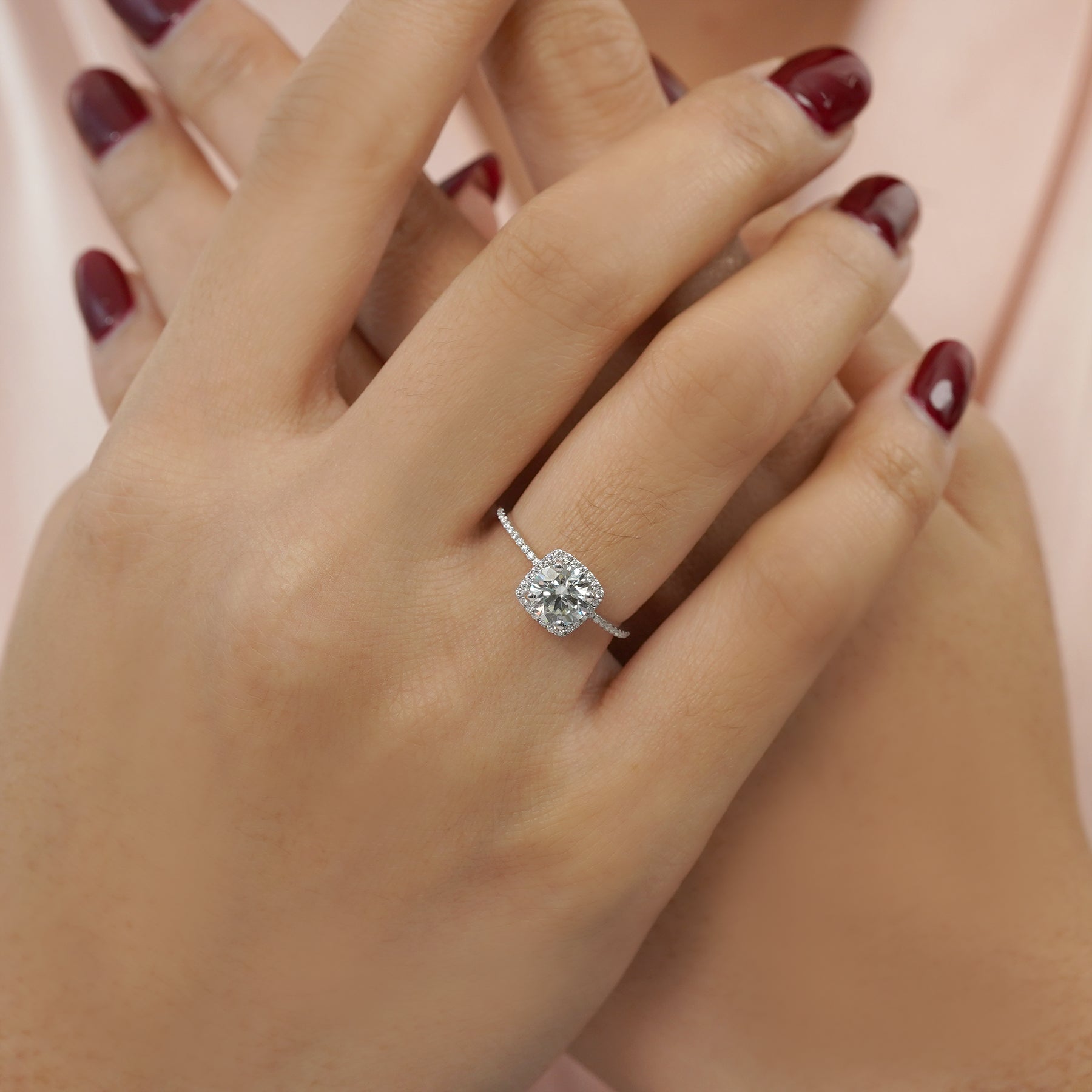 1 Carat Round cut Moissanite Halo Engagement Ring in 18k White Gold Over Silver featuring a total carat weight of 1 carat. The bridal wedding ring is made with real and high quality Moissanites that can be a perfect alternative to diamond rings as moissanites have almost the same durability and quality as with diamonds that will last for a lifetime. Your beautiful jewelry ring comes with a 30 Days Full Refund policy. The moissanite engagement ring is perfect gift for anniversary, birthday, mothers day, or any other special occasion to celebrate.