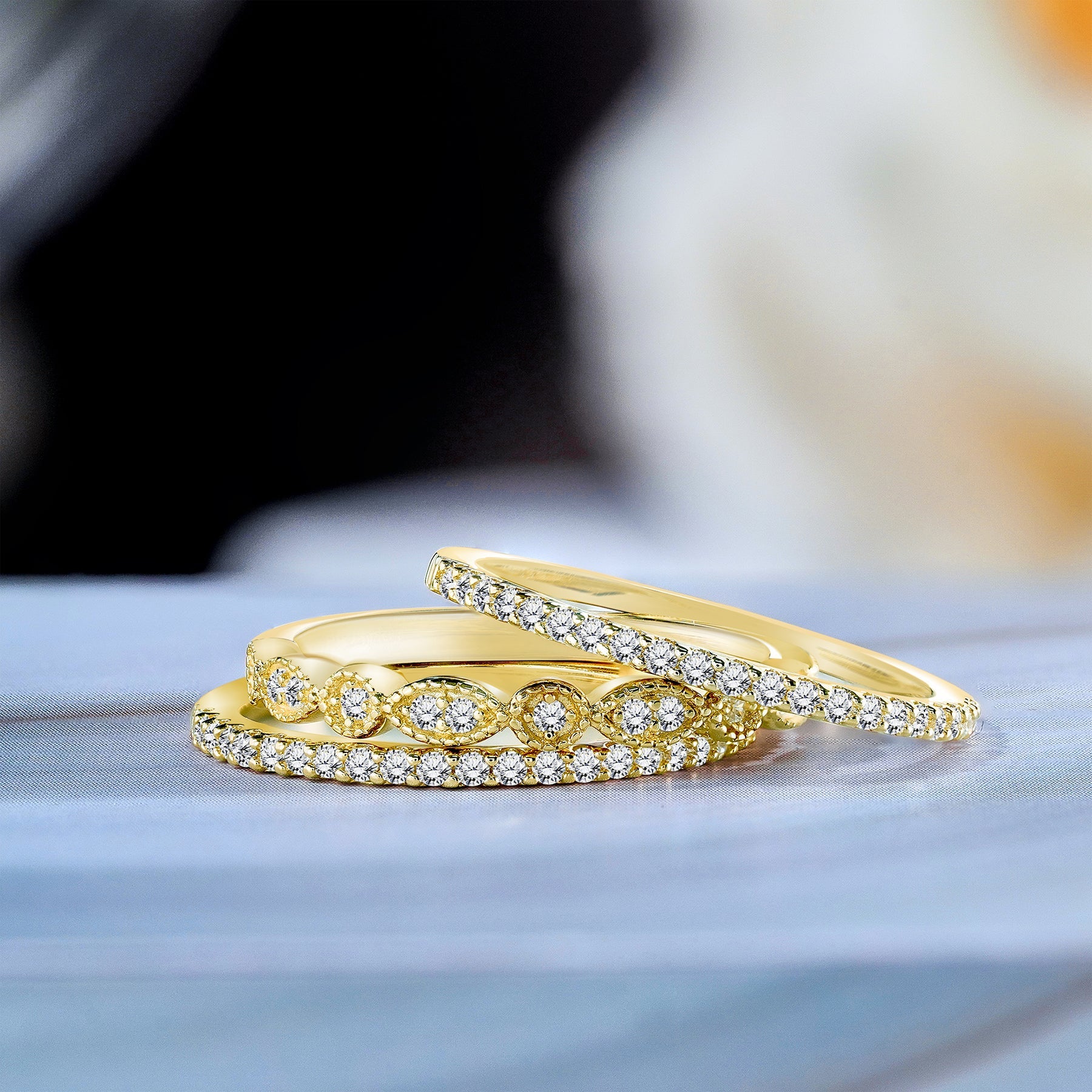 1 Carat Round cut Art Deco Wedding Ring Band Trio Set