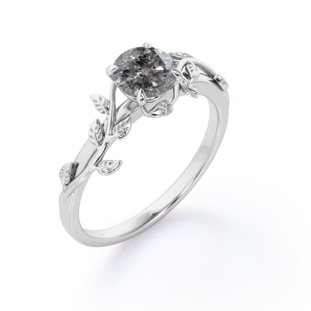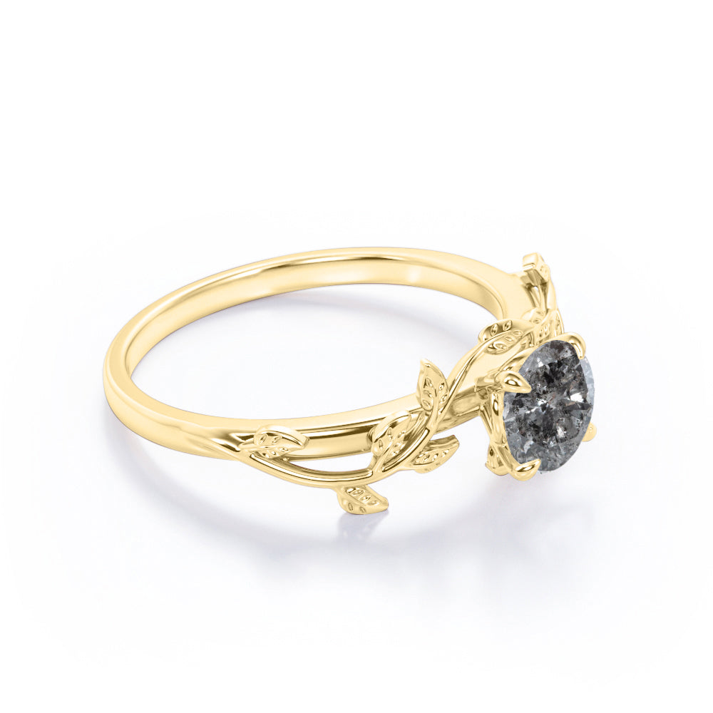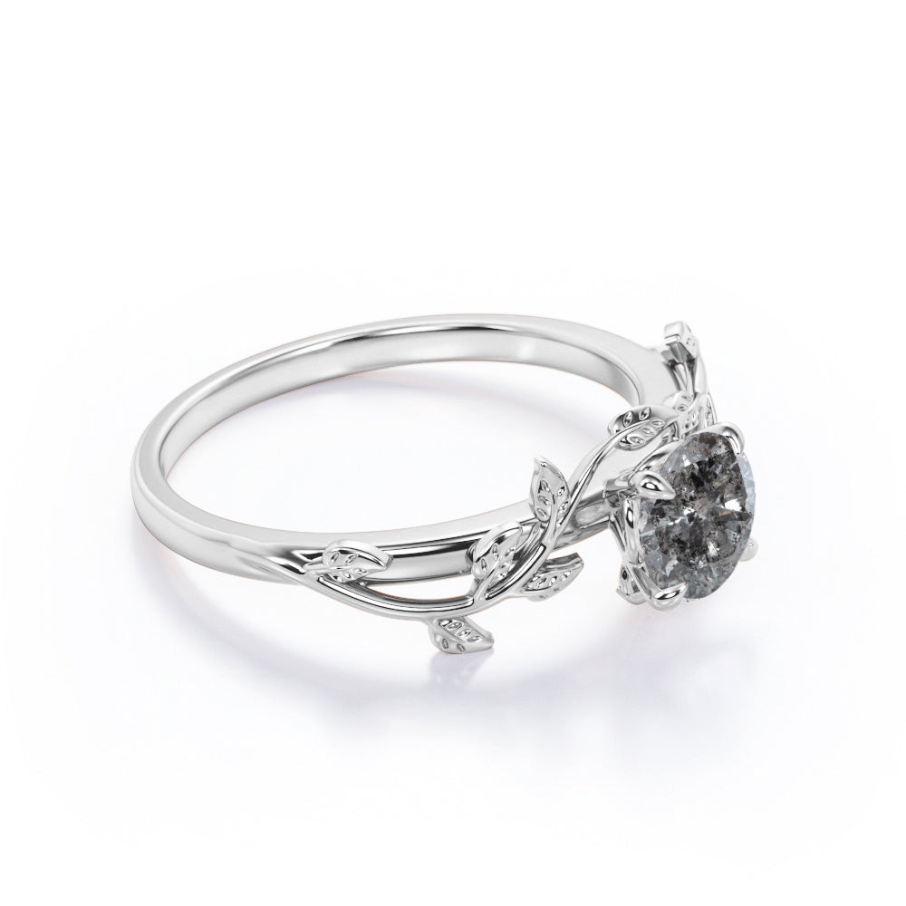0.50 Ct Round Salt and Pepper Diamond Leaf Engagement Ring