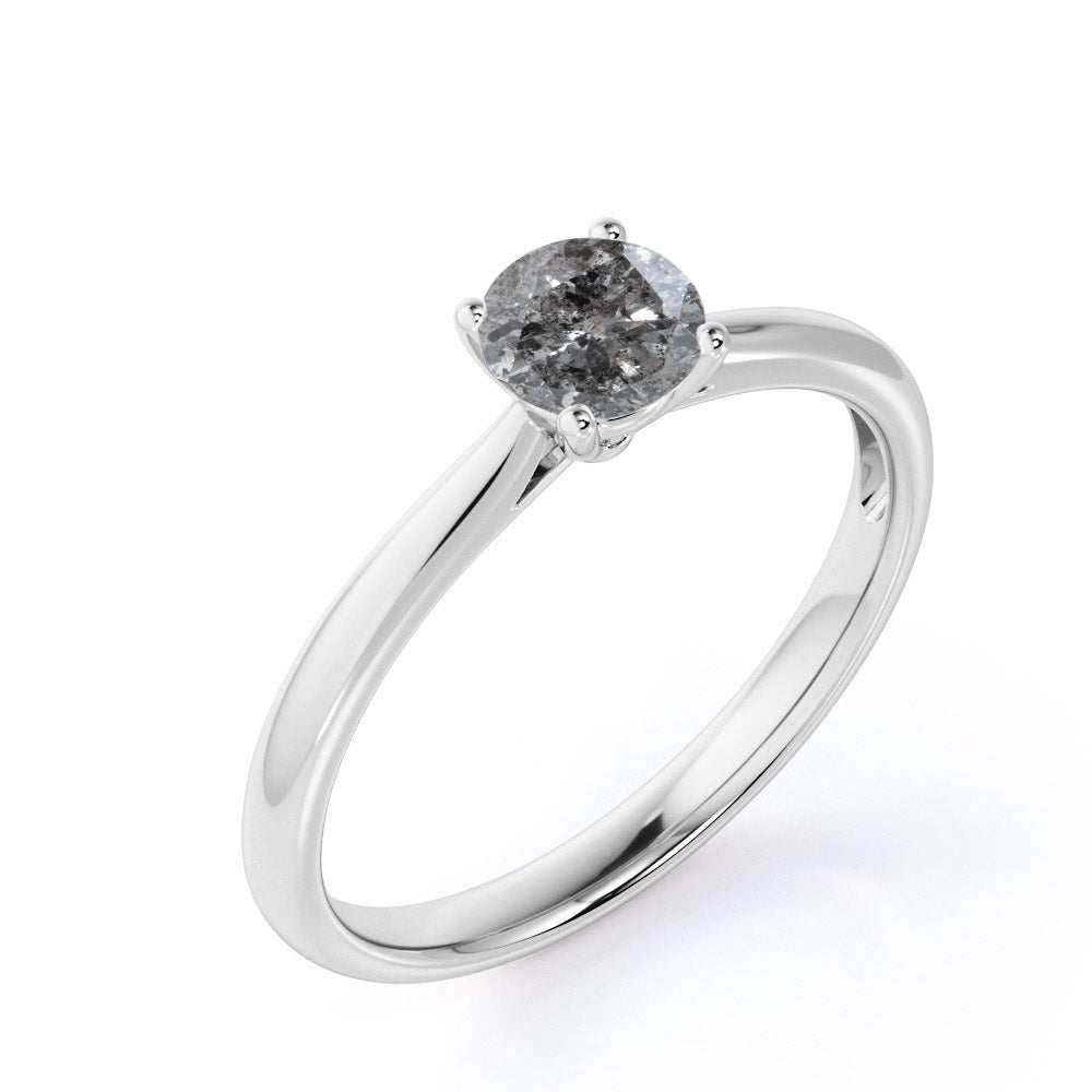 A minimalist and rustic approach, this 0.50 Carat Round Cut Real Salt and Pepper Diamond 4 Prong Solitaire Engagement Ring in White Gold will surely make a perfect alternative engagement ring. This gold engagement ring is highlighted by the natural salt and pepper diamond. This affordable salt and pepper diamond engagement ring for women is beautifully handmade. Crafted in precious Sterling Silver and in 10k, 14k or 18k Gold and can be customized to Rose Gold, White Gold or Yellow Gold, this bohemian inspired salt and pepper diamond engagement ring is carefully handmade by our passionate jewelry experts. Don’t miss this opportunity to own this rustic salt and pepper diamond gold engagement ring. It features 0.50 carat natural round cut salt and pepper diamond. Also, as your satisfaction is our most priority, we will do our best to have your handmade jewelry be carefully and beautifully crafted by our expert jewelers. The order also comes with a 30-day full refund policy.