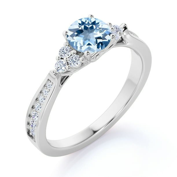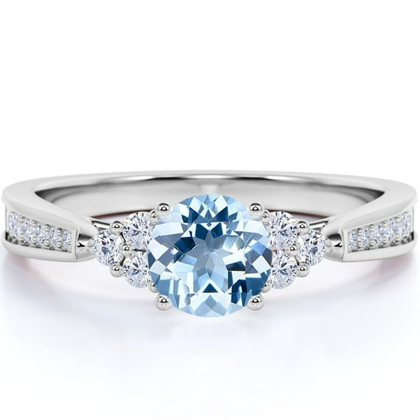 1 ct Round Aquamarine 7 Stone Pave Engagement Ring