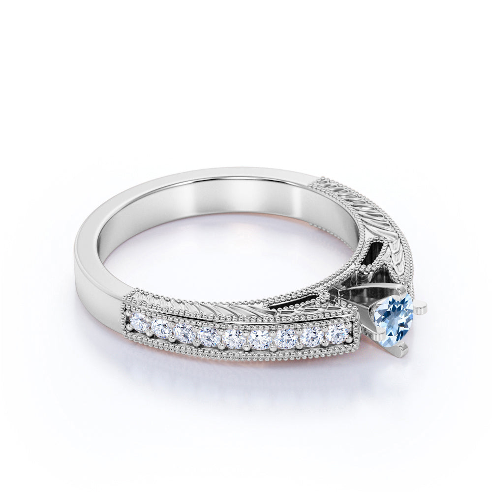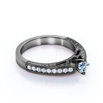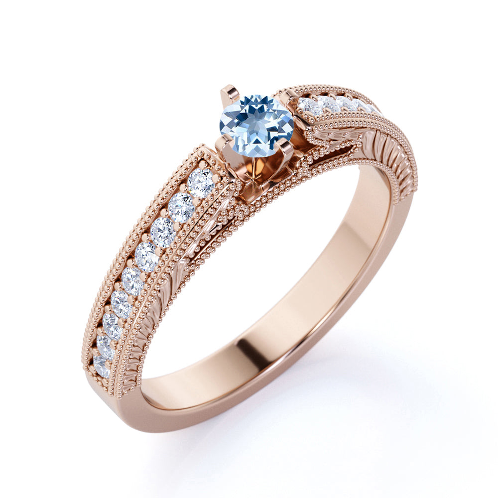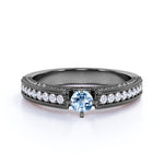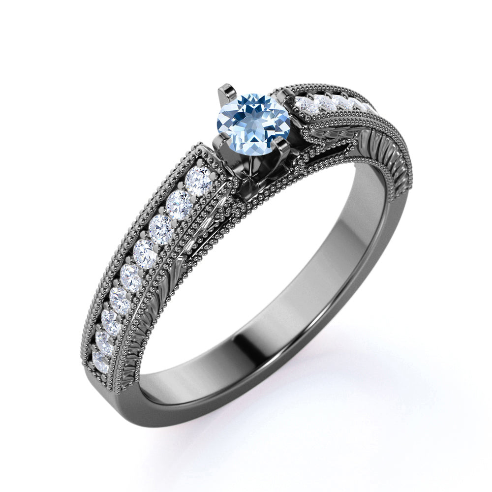 If you are looking for engagement rings, wedding rings, promise rings, anniversary rings, or any other rings, your mind may automatically think of Moissanite rings. But that doesn't have to be your only option. This 1 carat Round Sky Blue created Aquamarine & Moissanite Modern Anniversary Ring in 18k Yellow Gold over Silver will show you why. Made with love and care, this aquamarine pave ring can also be a perfect alternative for an engagement, anniversary or promise ring. This aquamarine birthstone ring is made with created gemstone and real gold over silver yet very affordable. This brazilian aquamarine silver ring is very affordable and well suited for everyday wear. This simple yet elegant art deco aquamarine ring is handmade with love and passion. It is the perfect alternative to the traditional gemstone rings. It features round created light blue aquamarine and real genuine Moissanites. Also, as your satisfaction is our most priority, we will do our best to have your handmade jewelry be carefully and beautifully crafted by our expert jewelers. The order also comes with a 30-day full refund policy.