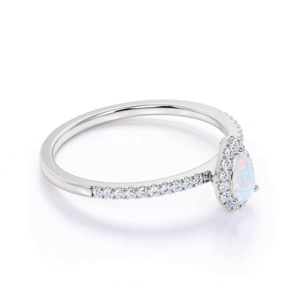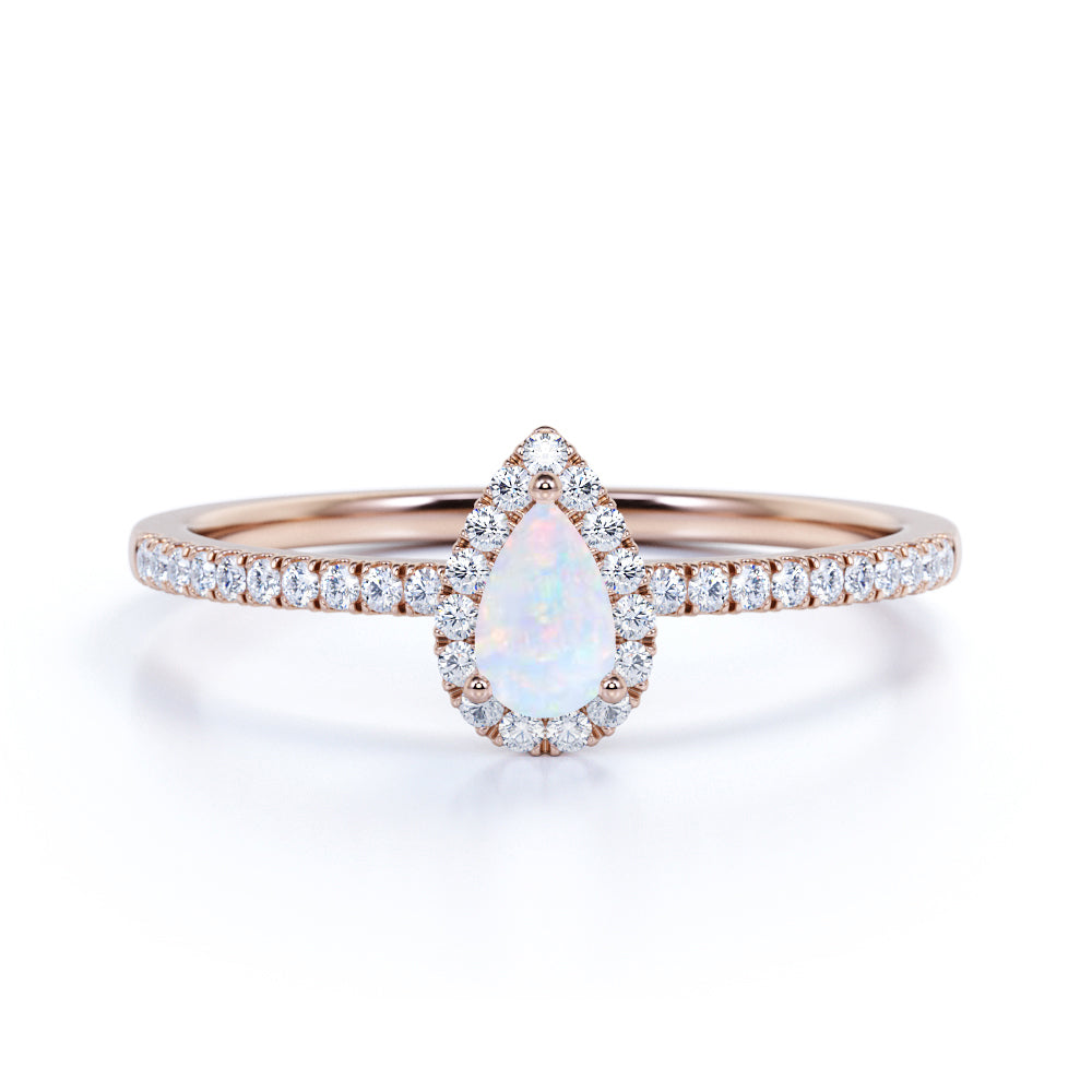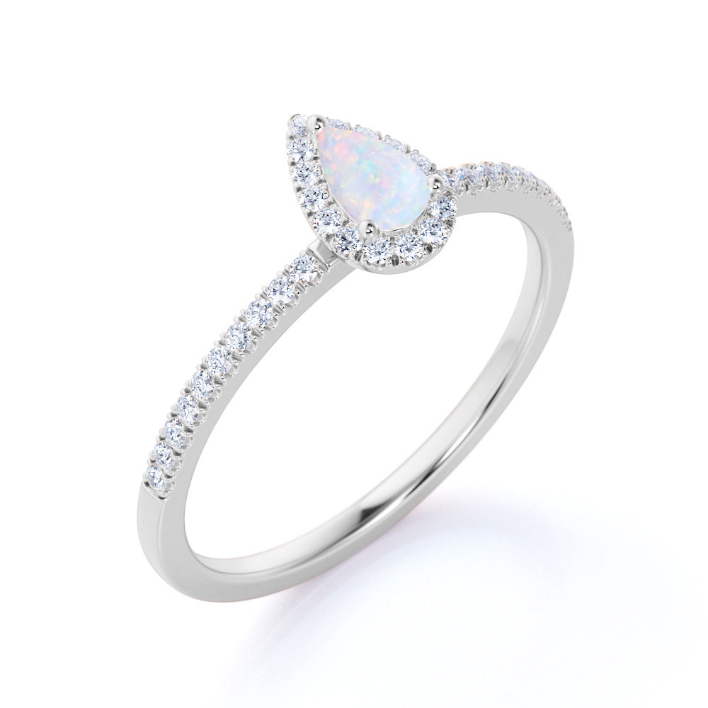 1 Ct Pear Cut Lab Created Opal Halo Engagement Ring