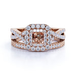 2.25 ct Princess Morganite Infinity Pave Wedding Ring Set