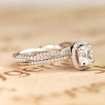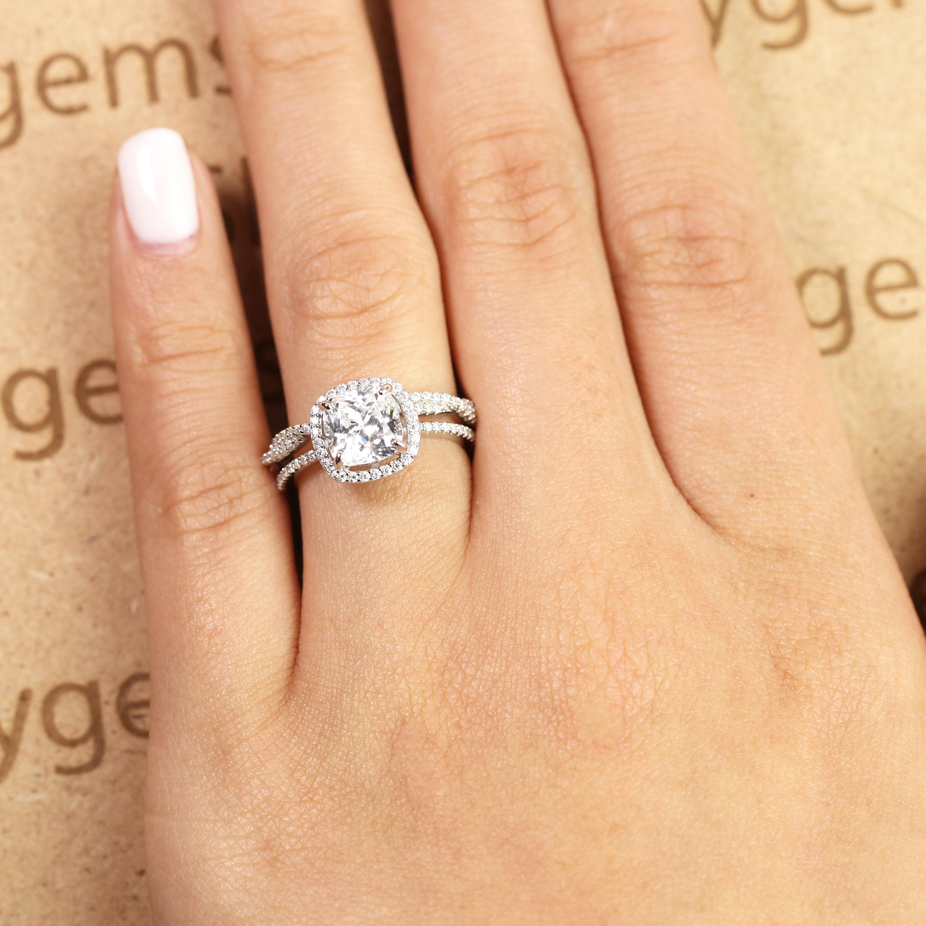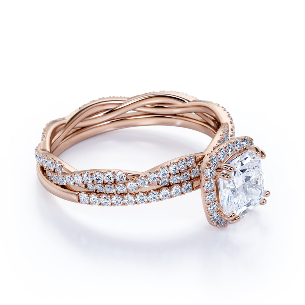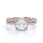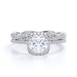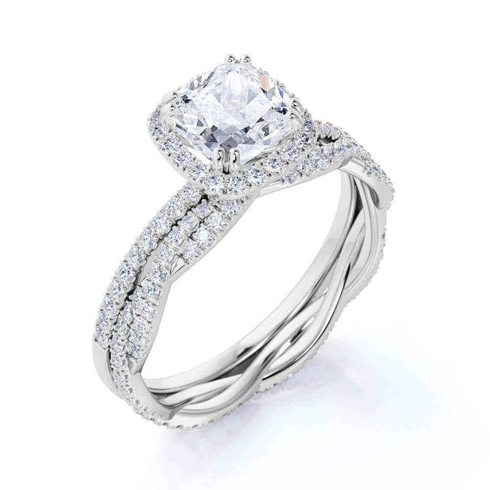 Pave 2 Carat Cushion Cut Moissanite Halo Bridal Set