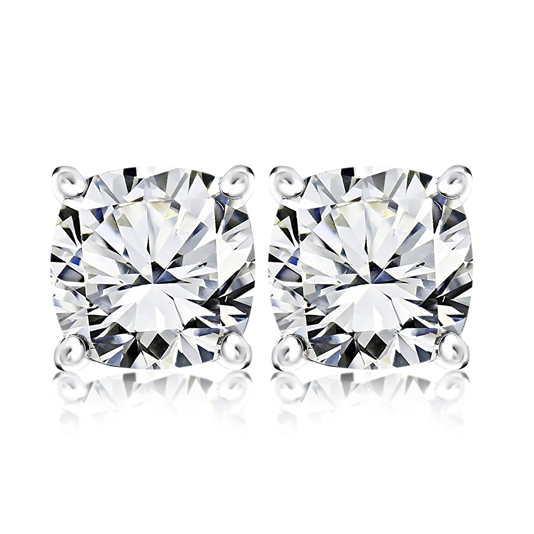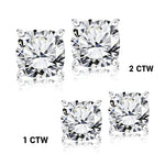 2 Carat Cushion Cut Moissanite Solitaire Stud Earrings In 18K White Gold Plating Over Silver