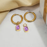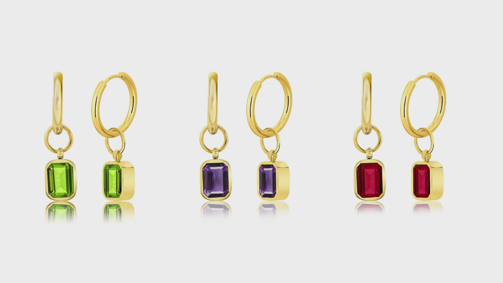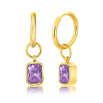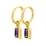 2 Carat Emerald Cut - Amethyst - February Birthstone Bezel Huggie Hoop Earrings - 18K Yellow Gold Plating