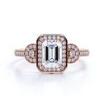 Make a romantic proposal with this stunning engagement and wedding ring for women. This eye-catching style showcases a 1 carat white moissanite in emerald-cut, surrounded by .75 carat sparkling diamonds. Captivating with a total of 1.75 carats of gemstones, this engagement ring of style is as lovely as she is.