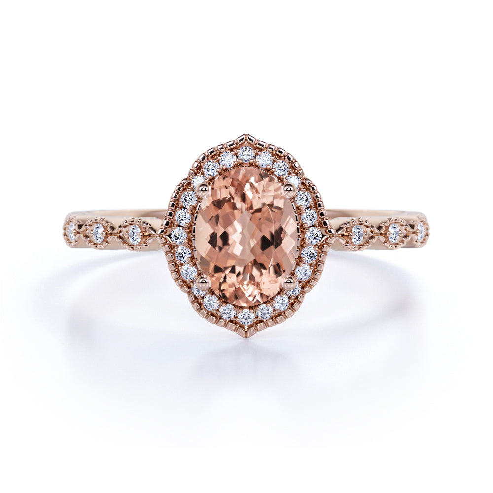Vintage 1.50 ct Oval Morganite Halo Engagement Ring