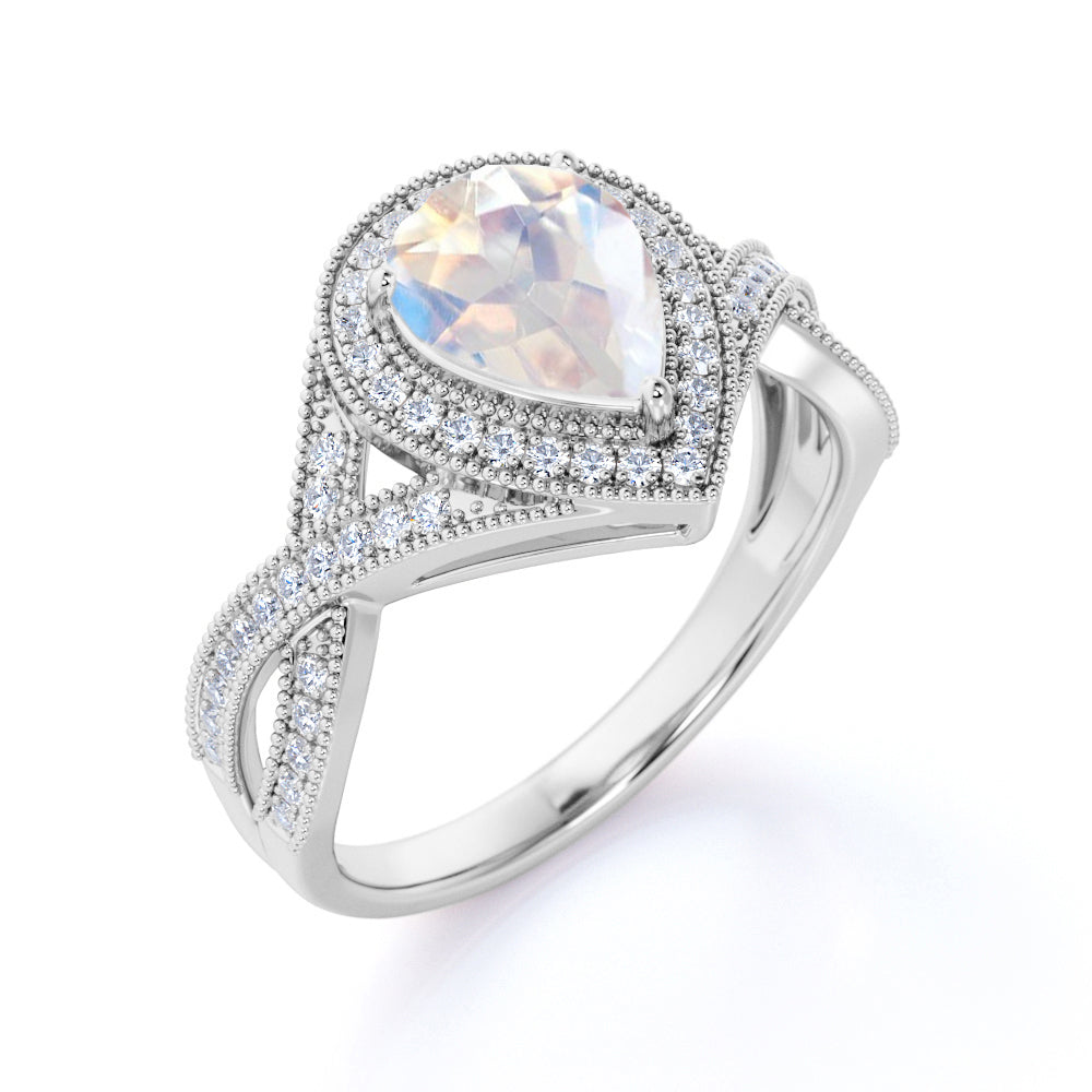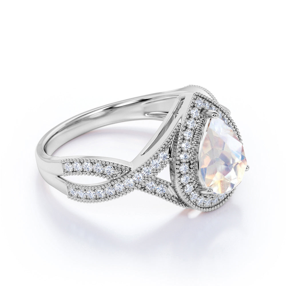 1.5 ct Teardrop Moonstone Halo Engagement Ring