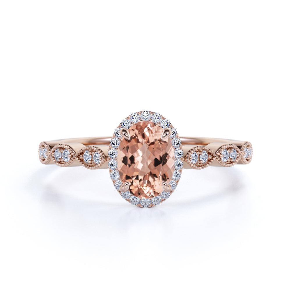 1.50 Carat Oval cut Real Morganite and Moissanite Engagement Ring in 18k Gold Over Sterling Silver. The pink peach morganite engagement ring consist of real natural peach morganite and real moissanites. The peach morganite engagement ring is made on real 18k Gold over Silver. The very affordable morganite and moissanite engagement ring, comes with the real natural pink morganite surrounded with real natural moissanites that can be a perfect alternative to diamonds as moissanites have almost the same durability and quality as with diamonds that will last for a lifetime. Your beautiful jewelry ring box/pouch comes with a 30 days full refund policy. The beautiful Morganite and Moissanite wedding engagement ring for women will make the perfect gift for her, whether you are looking for engagement, valentine's day, mothers day or anniversary gift.