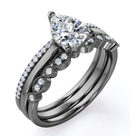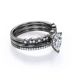 Paint your love story with this 2 Carat Pear Cut - 3 Prong Pave Set - Art Deco Milgrain Filigree - Trio Wedding Ring Set - 18K Black Gold Plating over Silver. Skillfully hand-cut into a nice pear cut by our skilled jewelers, these gorgeous sterling silver engagement rings with Moissanite are made up of 1.5 carat Moissanite and 0.5 carat side Moissanites on solid black gold plating over silver. Special and non-traditional, this Moissanite jewelry is well-suited for those who are not quite into normal lifestyle. With naked eyes Moissanite look, shine and feel exactly like diamonds and moissanites. Reflective properties of these sterling silver engagement rings with Moissanite will enhance happiness and attract positive vibes. These sterling silver Moissanite rings are beautiful and accessible since they are available at a reasonable price. Moissanite is the most popular alternative gemstone for diamond and moissanite while being at lower and more affordable price. If you are in search of an incredibly romantic gift for your significant other, our best Moissanite rings can be a good choice for any special occasion, i.e. a birthday ring, an engagement or marriage proposal ring, a Valentines' day ring, etc. Additionally, these sterling silver Moissanite rings can be customized to your own choice of metal colors: 18K yellow gold plating over silver, 18K white gold plating over silver, 18K rose gold plating over silver, or 18K black gold plating over silver. Let’s impress her with these Moissanite wedding rings and she will be eternally joyful.