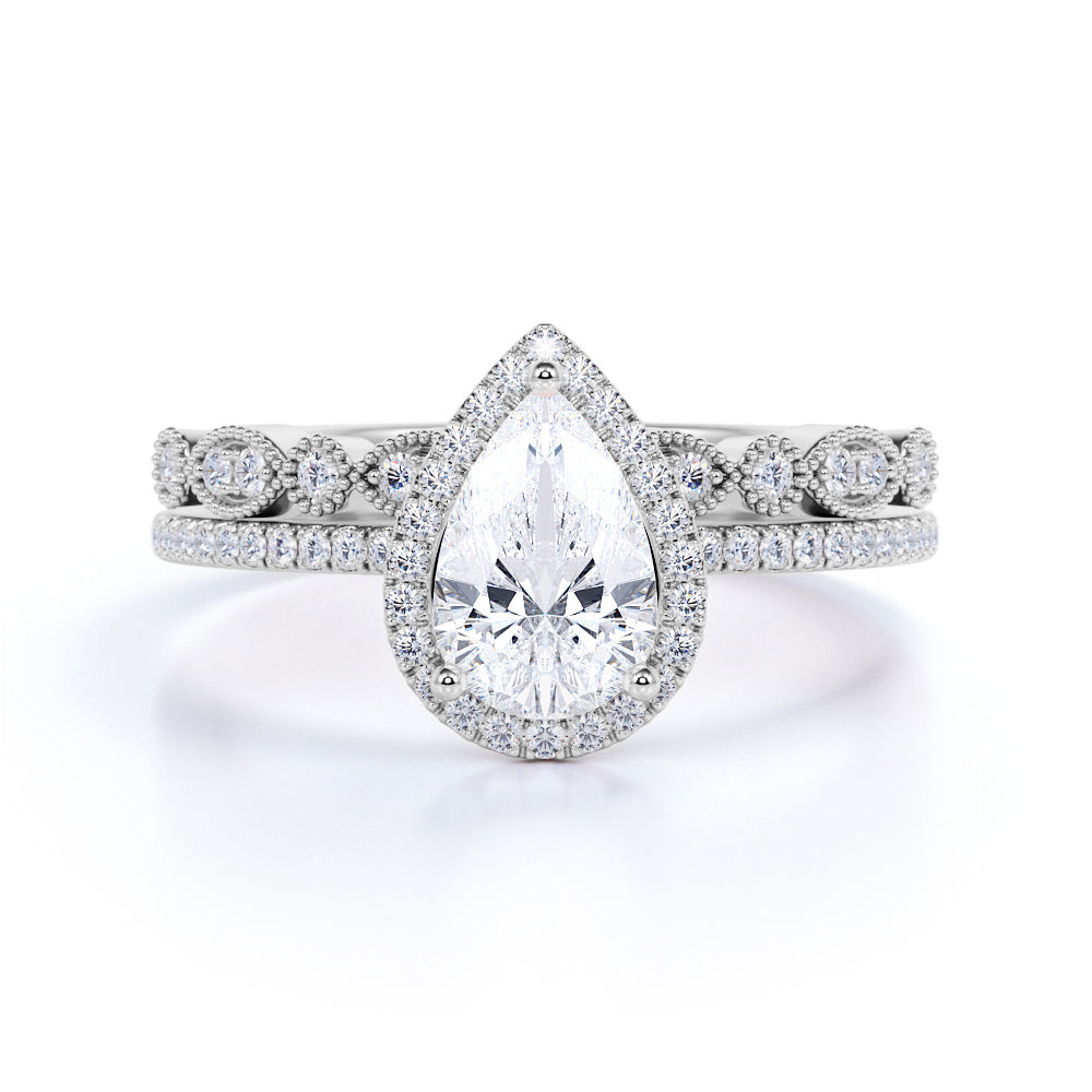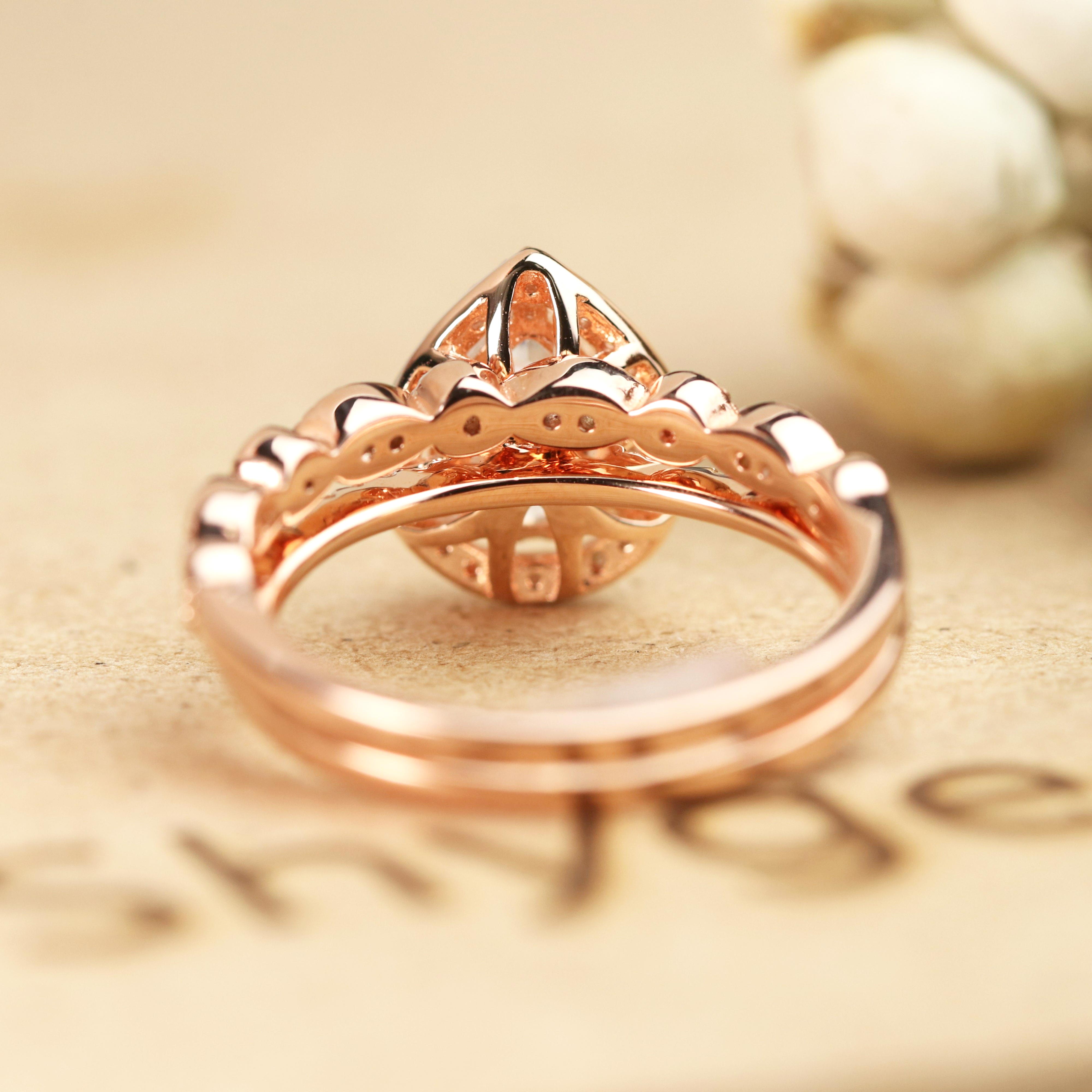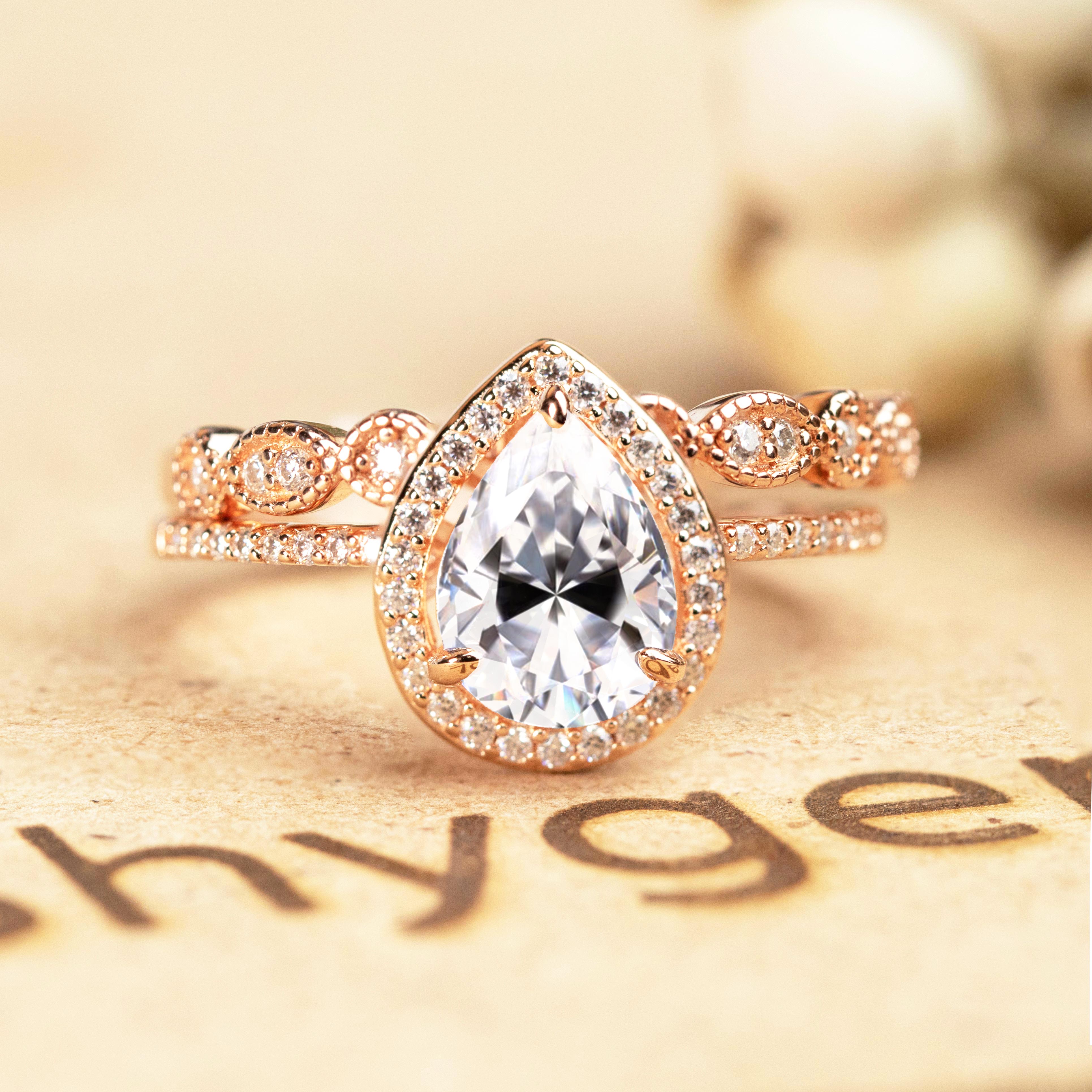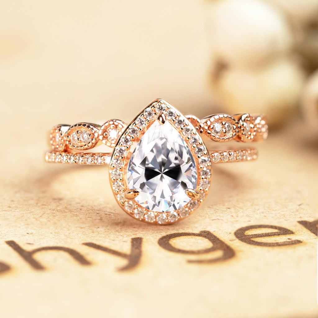 1.75 Carat pear cut Moissanite and Diamond Wedding Ring Set in 10k Rose Gold