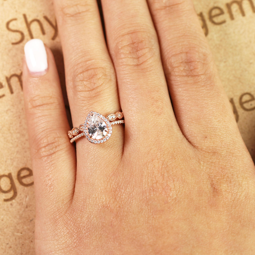 Product Purchased: [1.50 Carat Morganite Diamond Trio Wedding Set in 18K Rose