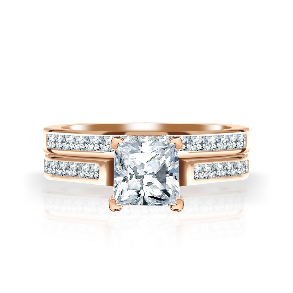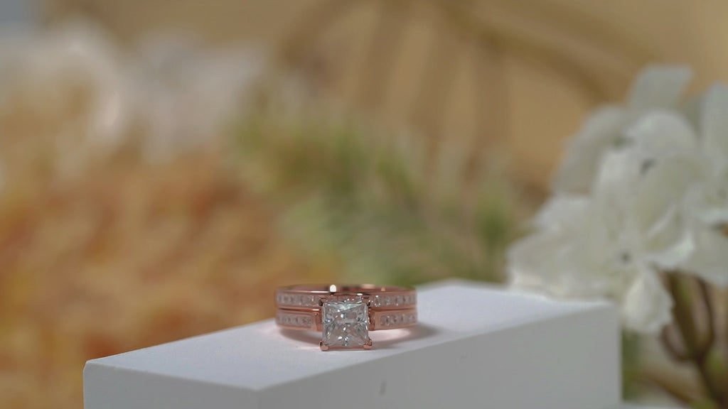 2 Carat Princess Cut Moissanite Channel Wedding ring Set