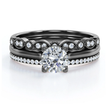 Antique 2 Carat Round Moissanite Pave Trio Ring Set