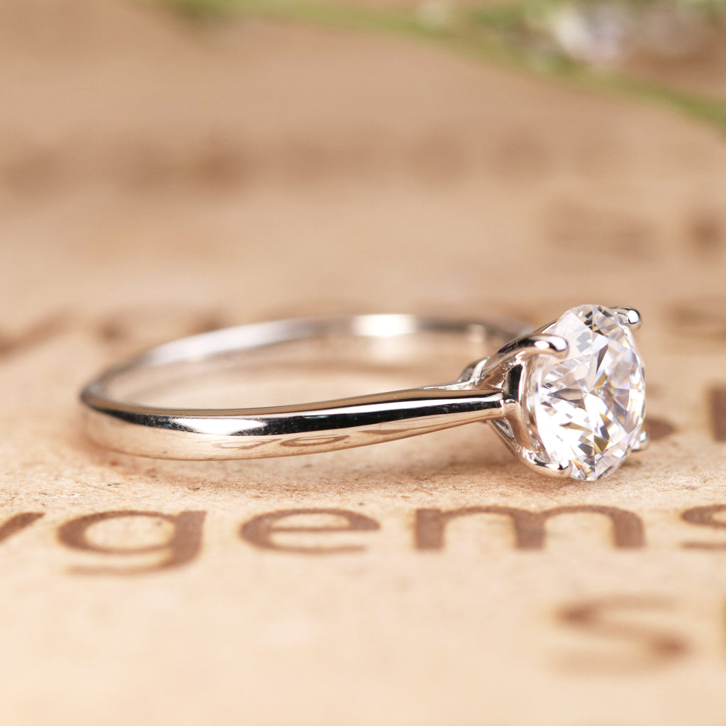 Solitaire 1 Carat Round Cut Moissanite Engagement Ring