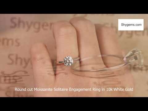 Handmade to perfection 1 Carat Round cut Moissanite Solitaire Engagement Ring in White Gold. The engagement ring features 1 carat Round cut moissanite full of sparkle and beauty and is made in solid 10k White Gold. The order comes with 30 days full refund policy.
