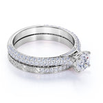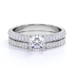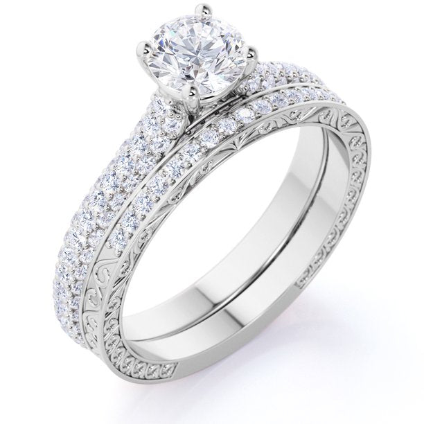 1.50 Carat Round Cut Moissanite Wedding Set - Bridal Set - Filigree Ring - Cluster Ring - 18k White Gold Over Silver