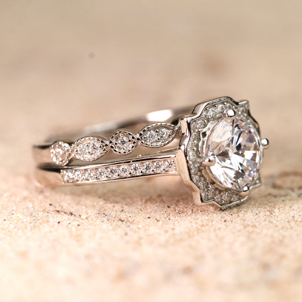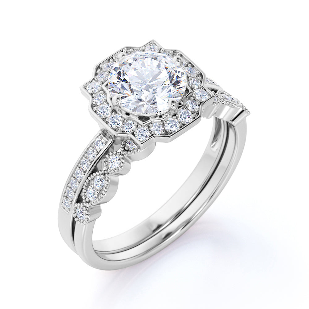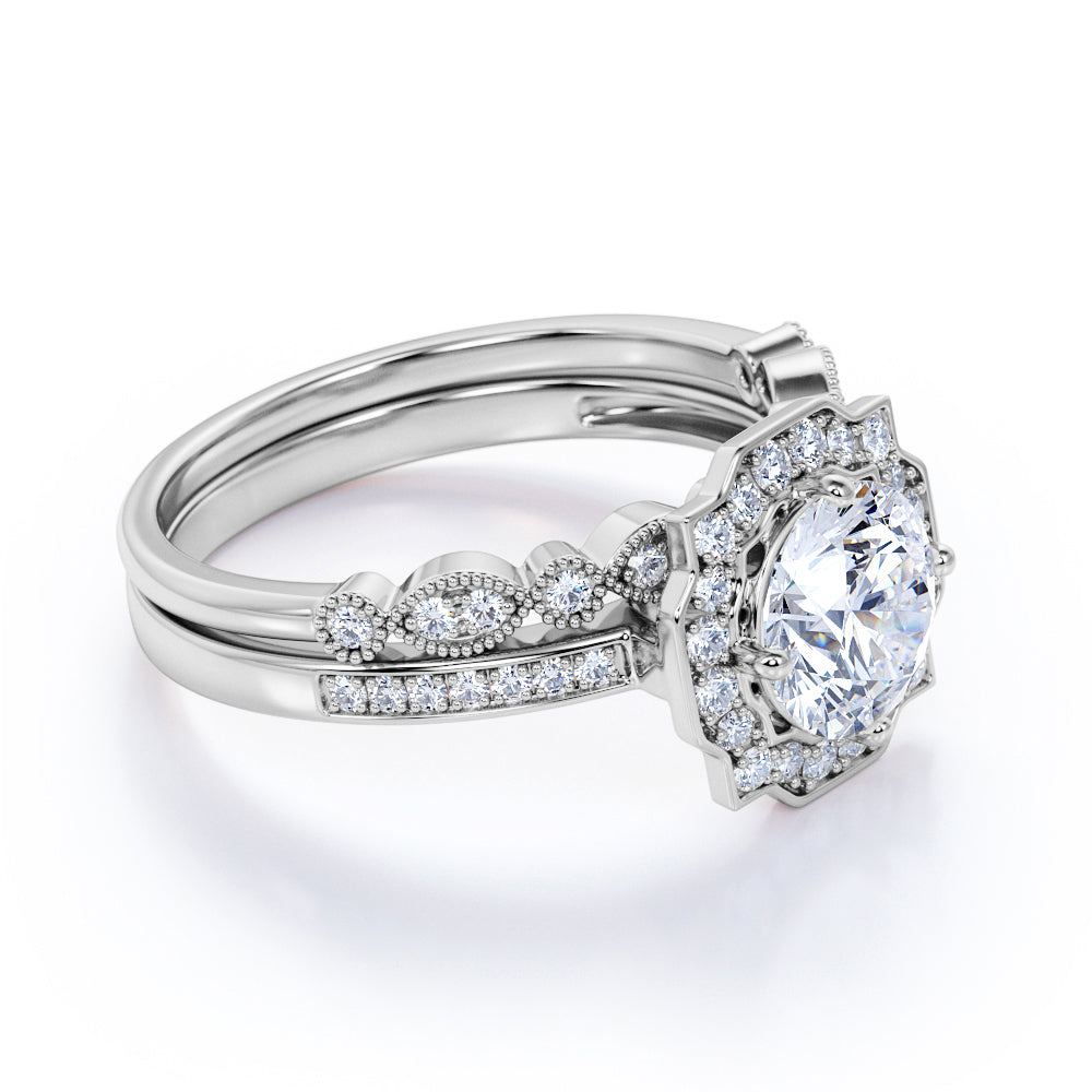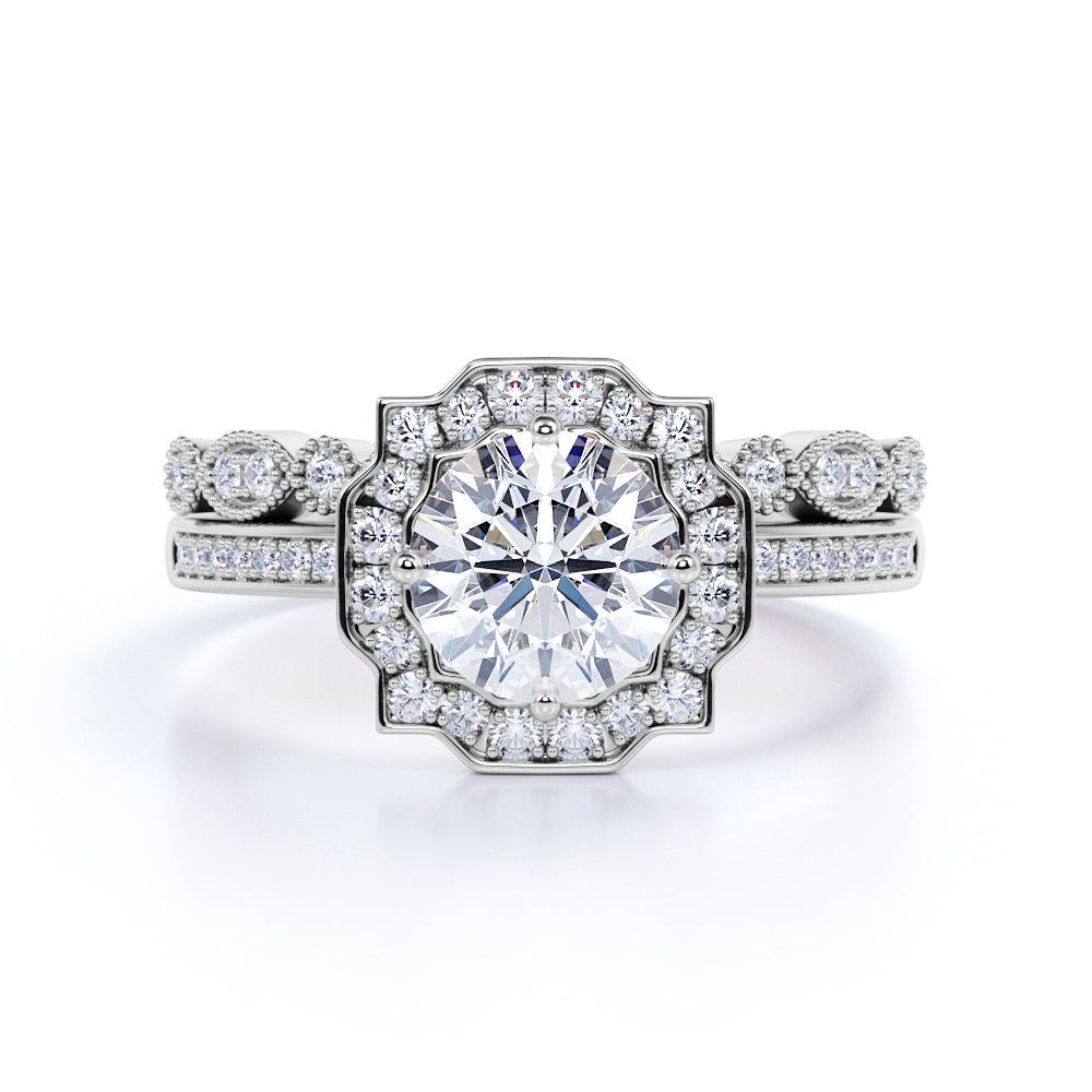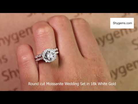 1.75 Carat Round cut Moissanite Wedding Set in 18k White Gold Over Silver