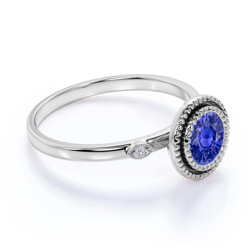 The wait is over for those women who are tired of those crazy details which is not necessary for your engagement ring, this minimal blue sapphire ring is the best for you. All of our rings are genuine, real and authentic. Perfect for valentine, mother's day, anniversary gift and at a very reasonable prices. This blue sapphire ring features an approximately 1.50 carat round cut certified blue sapphire, surrounded by .10 carat authentic side diamonds, for a total weight of 1.60 carats.