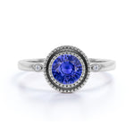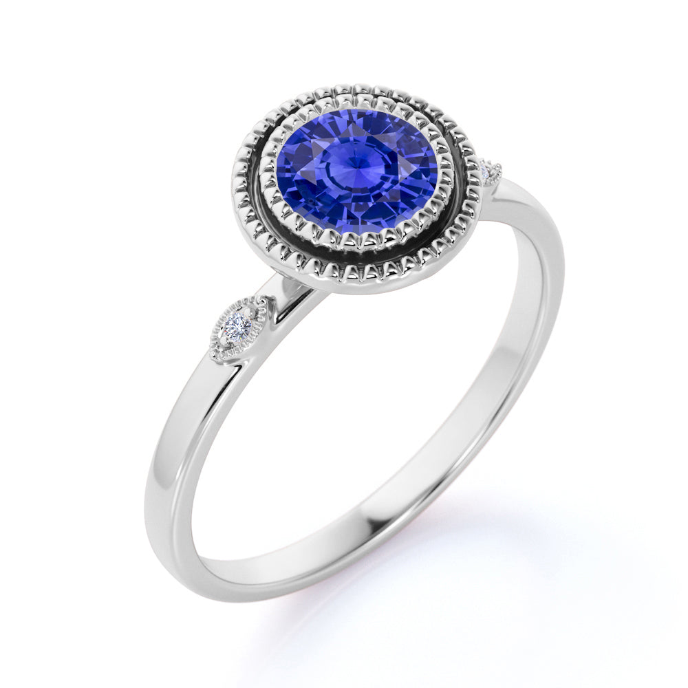 The wait is over for those women who are tired of those crazy details which is not necessary for your engagement ring, this minimal blue sapphire ring is the best for you. All of our rings are genuine, real and authentic. Perfect for valentine, mother's day, anniversary gift and at a very reasonable prices. This blue sapphire ring features an approximately 1.50 carat round cut certified blue sapphire, surrounded by .10 carat authentic side diamonds, for a total weight of 1.60 carats.