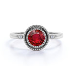 All of our rings are genuine, real and authentic. Perfect for valentine, mother's day, anniversary gift and at a very reasonable prices. This ruby ring is also considered the new vintage art deco engagement ring, because of its art deco style that is unique and one of a kind ring design. This ruby ring features an approximately 1.50 carat round cut certified ruby, surrounded by .10 carat authentic side diamonds, for a total weight of 1.60 carats.