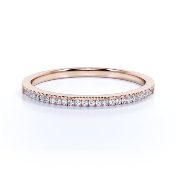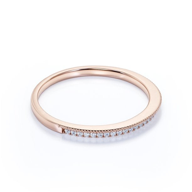 .30 ct Diamond Wedding Band - Stackable Ring - Pave Diamond - Dainty Diamond Ring - 10K Rose Gold